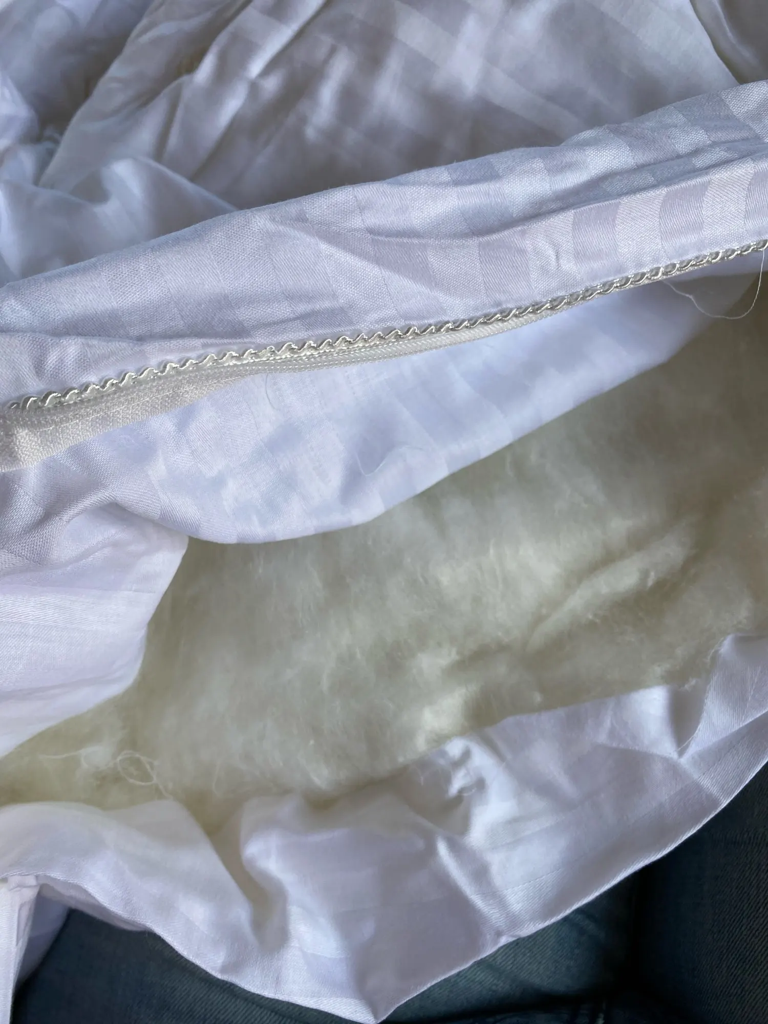 Одеяло шикарное, очень мягкое и приятное на ощупь. Спать под ним зимой тепло (в доме +20), не потеем, летом еще не проверяли. В одеяле есть молния для доступа к наполнителю, наполнитель поджигала - воняет палеными волосами, мочила водой - разорвать мокрые волокна нелегко. Покупкой очень довольна!