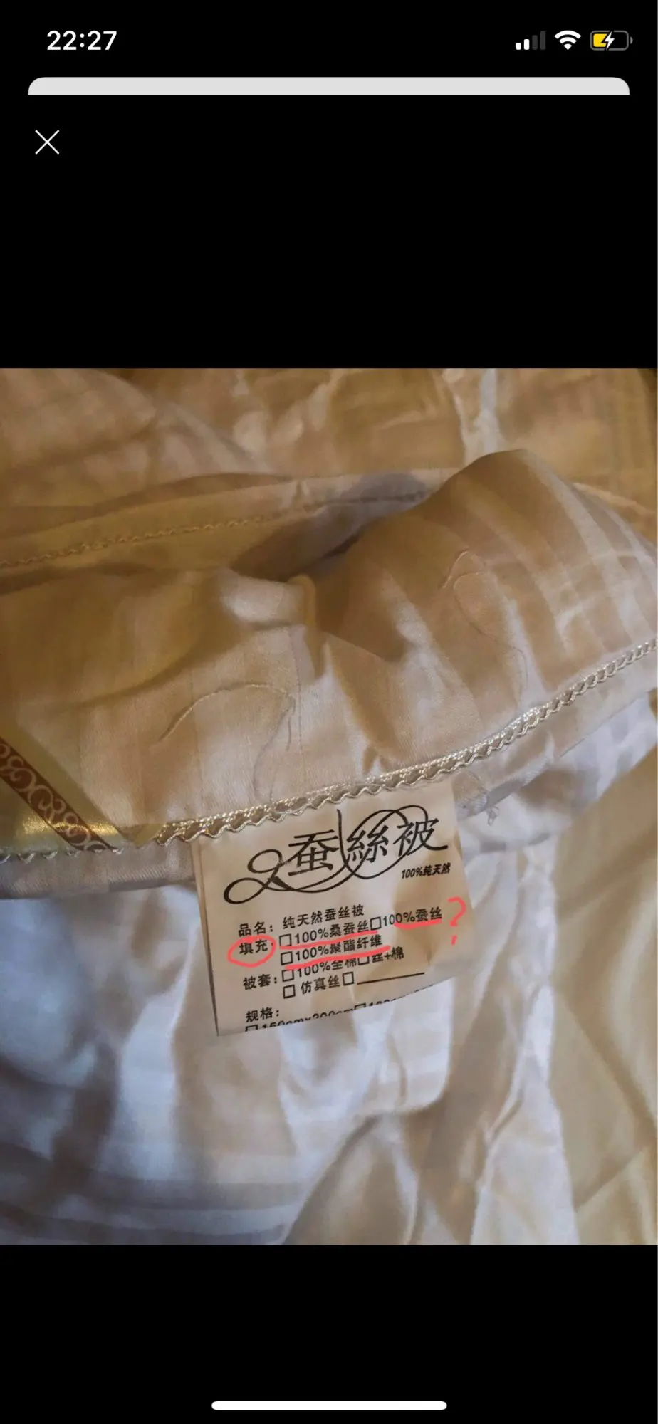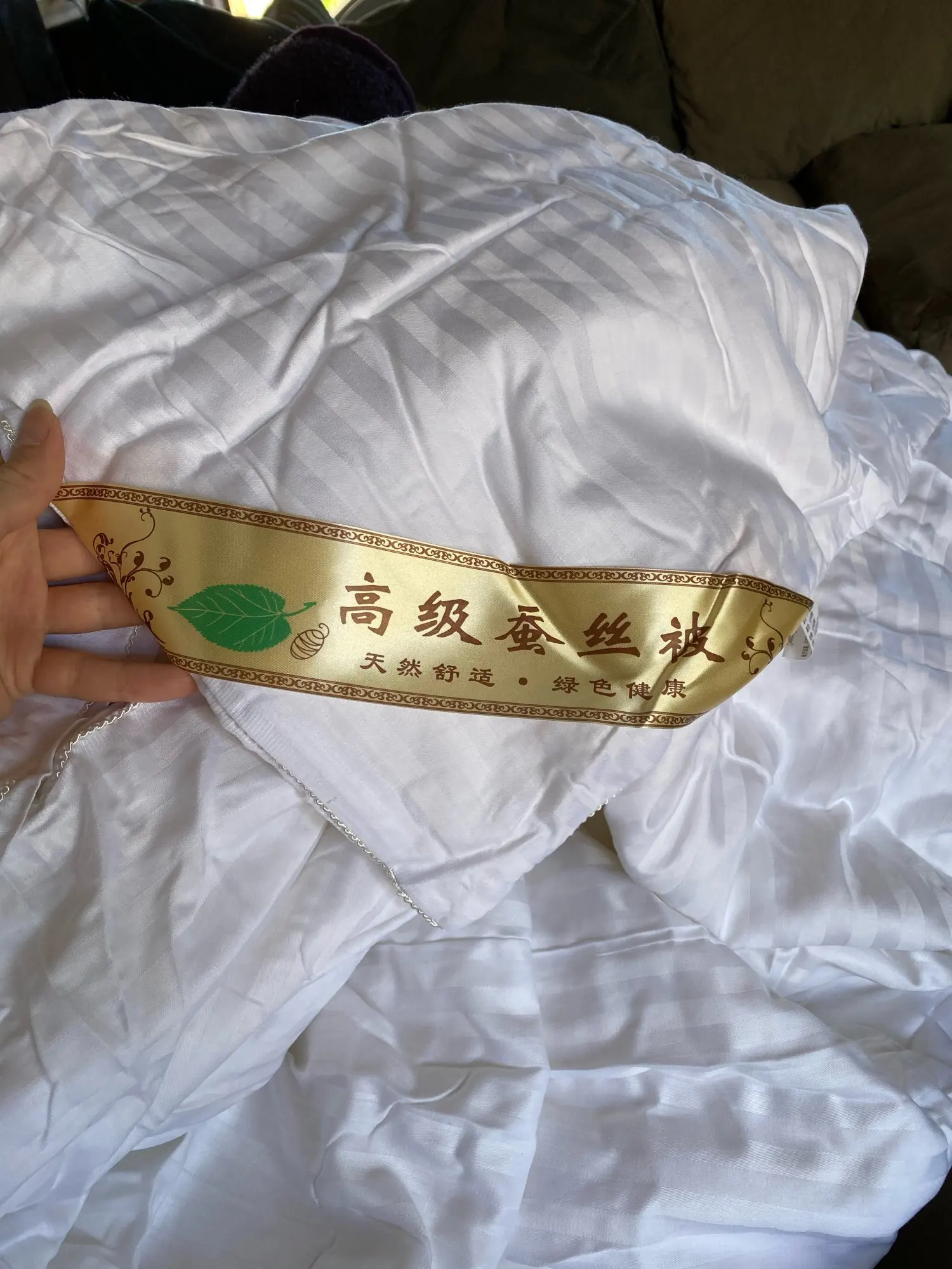 Отличное одеяло! Внутренняя часть из натурального шелка, хлопковая крышка. Он имеет некоторый запах, поэтому придется проветрить его, прежде чем я смогу его использовать. Правильный размер. 64 дня в Новую Зеландию.