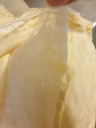 Очень довольна покупкой,одеяло 200-160cm,3 кг, желтого цвета, точно соответствует описанию товара, посылка дошла быстро,спасибо продавцу, что не поскупился и оформил такую доставку (сначала самолетом, потом курьером почты Россия до двери). Все это время приходили сообщения о передвижении посылки, поэтому не было необходимости самой отслеживать ее и волноваться. Сбоку имеется молния 60 см, расстегнув ее, можно видеть волокна внутри одеяла. Конечно, я как и многие покупатели ,решила протестировать волокна на их натуральность.Взяв образцы из разных углов одеяла, я поджигала их, сравнивала со своим волосом и синтетическим волокном из подушки. И вот результат: пепел волокон одеяла и волоса легко растирались пальцами, а на синтетическом волокне остался плотный шарик пепла,что дало мне основание предположить, что одеяло наполнено натуральными шелковыми волокнами. Спасибо продавцу за честность и порядочность. Рекомендую этого продавца. И хочу к лету заказать еще одеяло 1.5 кг.