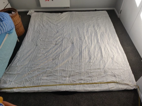 Качество приемлемо для цены, Протестировано и является шелковым. Собственные измерения достигли 212x231 см, а вес, включая упаковку, составляет всего 3,34 кг, так что не совсем то, что было описано (оплачивается за 220x240 см-3,5 кг)