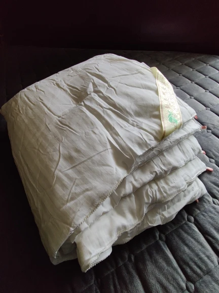 Продавец отправил одеяло быстро. Чехол приличный, есть небольшая молния сбоку, как и указано в описании. Одеяло простегано. Натуральный шелк.
