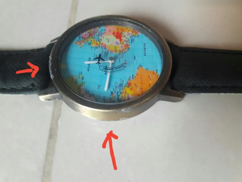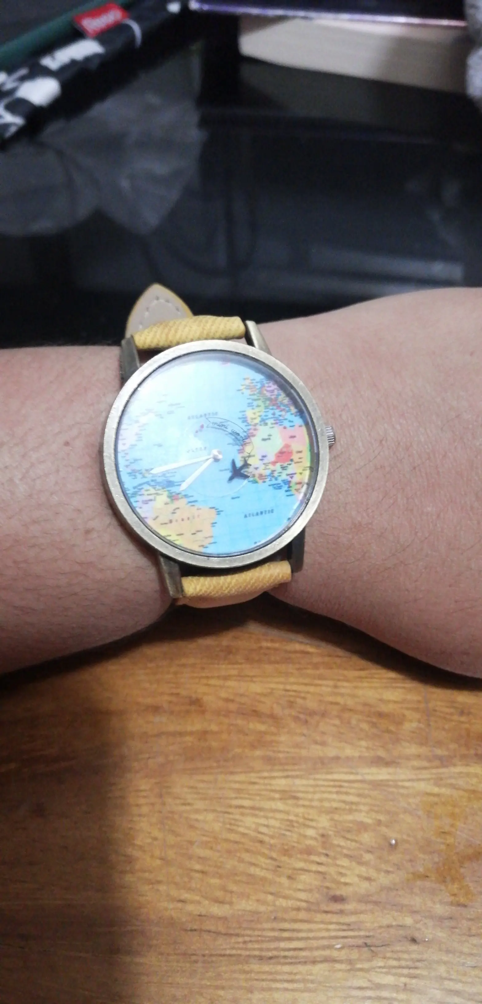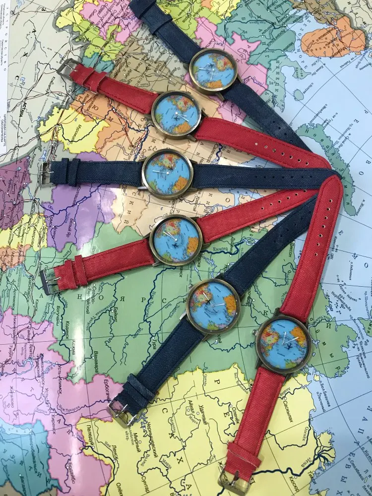 Часы мужские кварцевые, с картой, самолетом, кожаным платьем