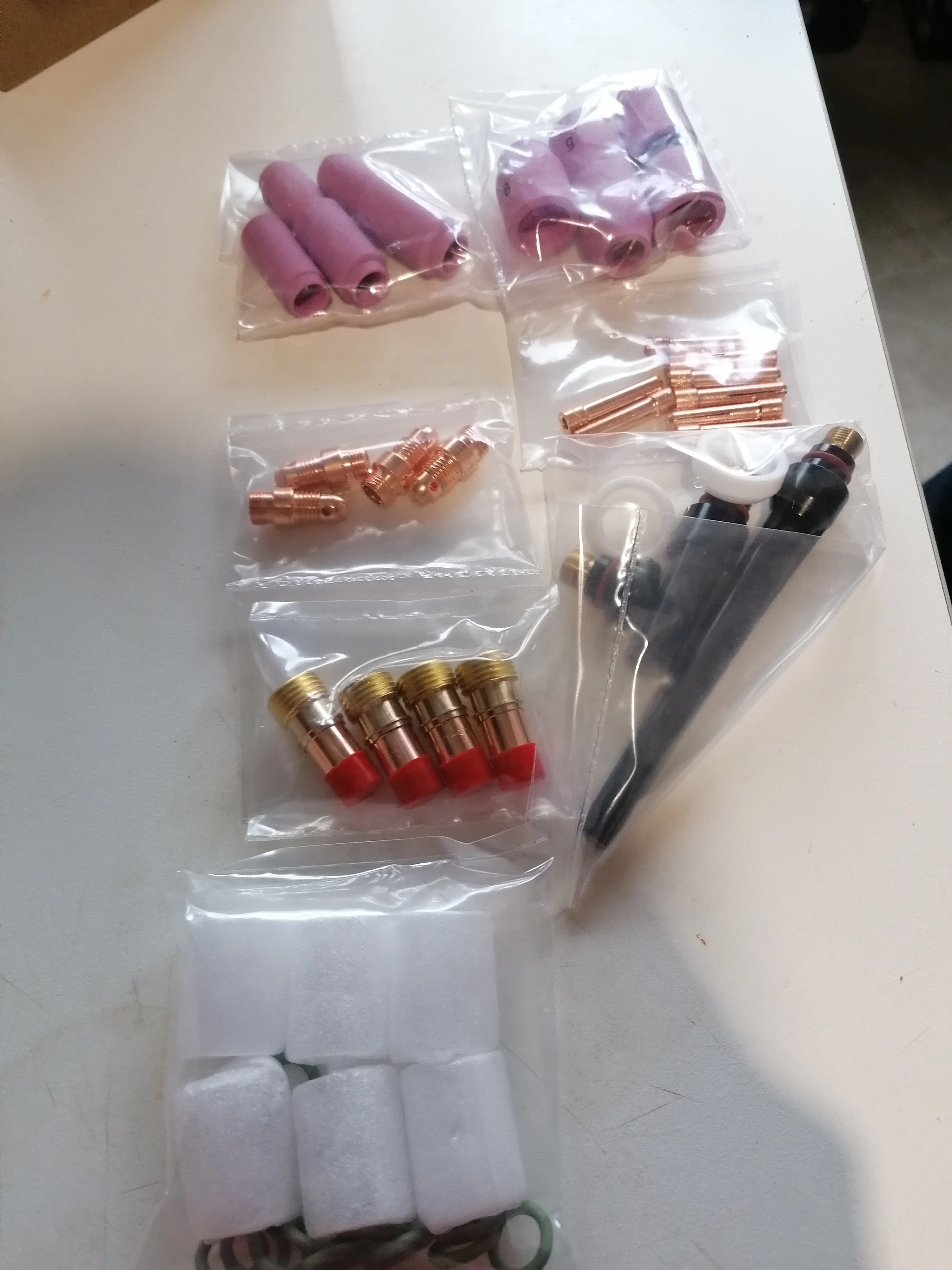 Шикарная комплектация, порадовала упаковка,всё по отдельным пакетикам запаковано в пупырчатую плёнку. так же примерял по горелке WP-26. всё в норме без перекосов. Завтра проверю, пока скидки не помешает ещё заказать комплект на запас притом такого качества.
