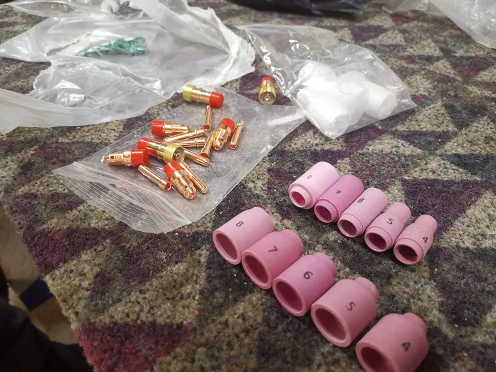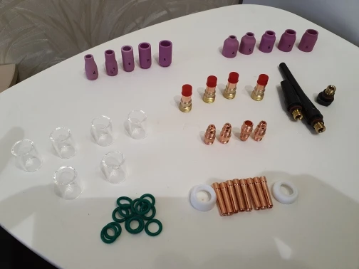 отличный набор. Да, сопла небольшие, но для 17-й горелки самый раз. варить нержу 1-2мм то что нужно! На линзах отличная защита при расходе аргона 6-8л/мин.