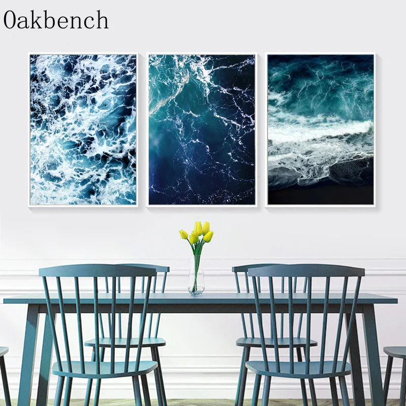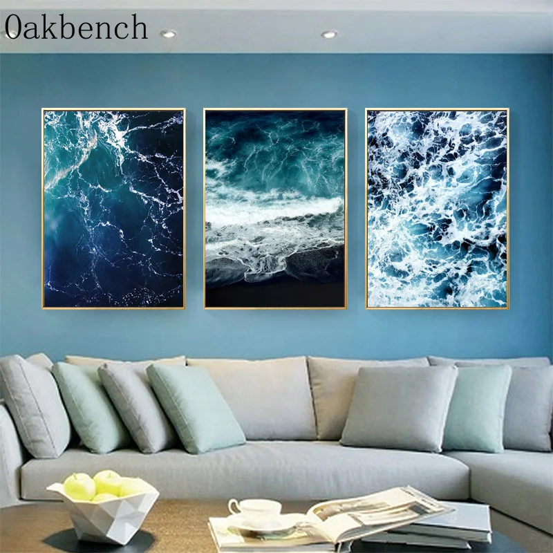 Волны настенная живопись синий океан холст печать морские пейзажи плакат скандинавские постеры и принты гостиная настенные художественные картины декор