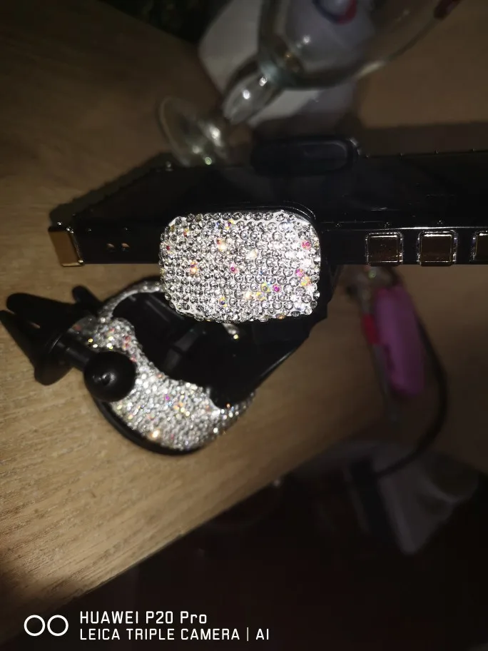 На фотографиях с али выглядит качественнее. Стразы приклеены на бегу, неровно, везде вылезает клей. Но издалека выглядит очень достойно. Упаковка пришла мятой совершенно, а крепеж заказывался для подарка..