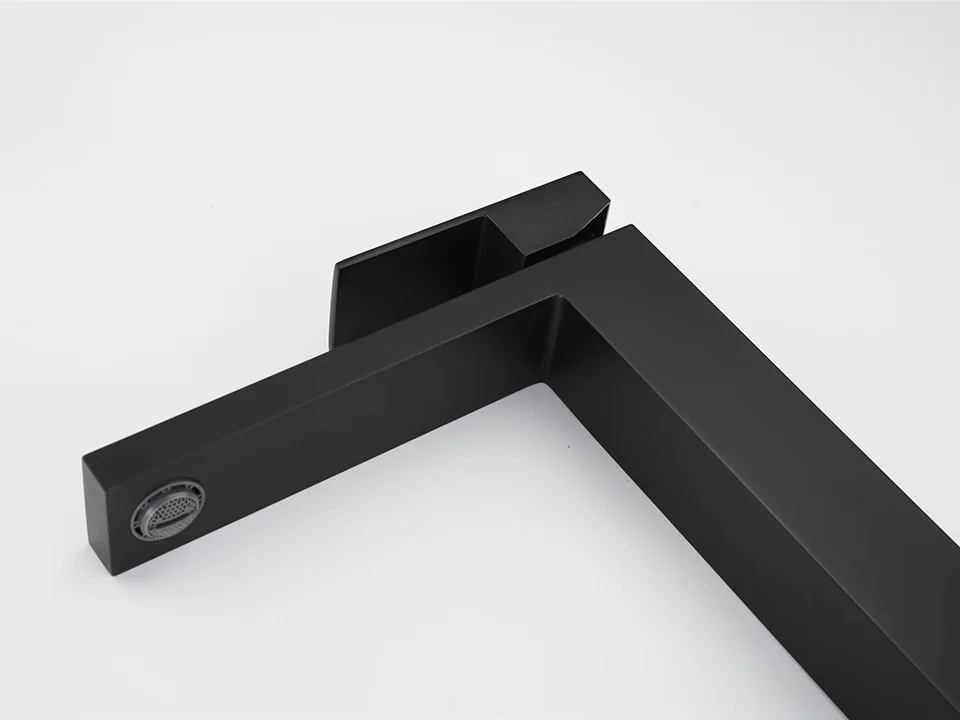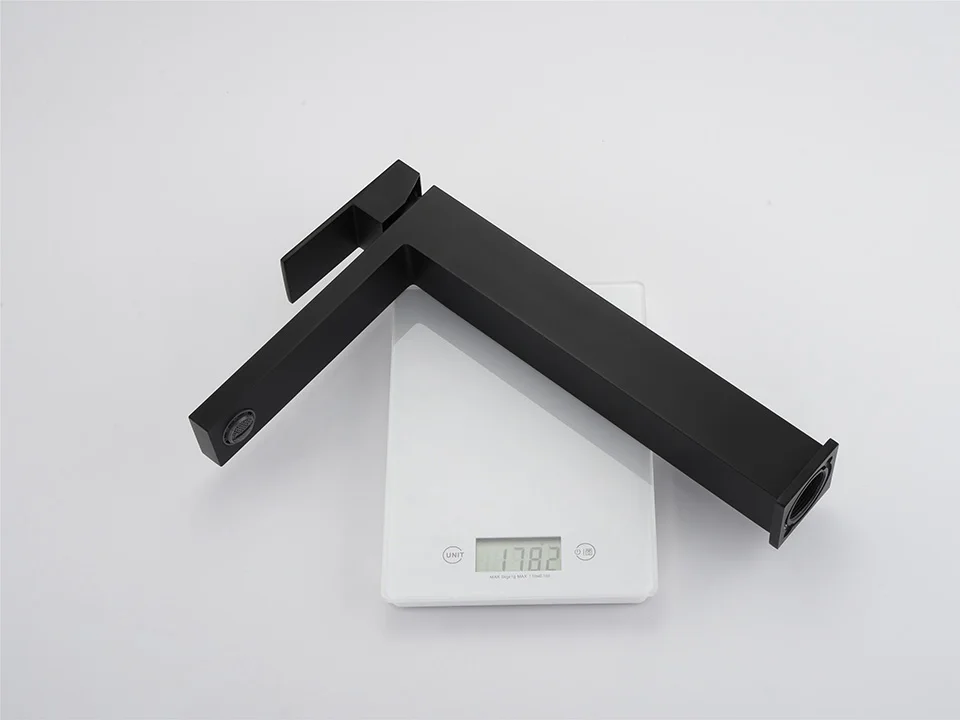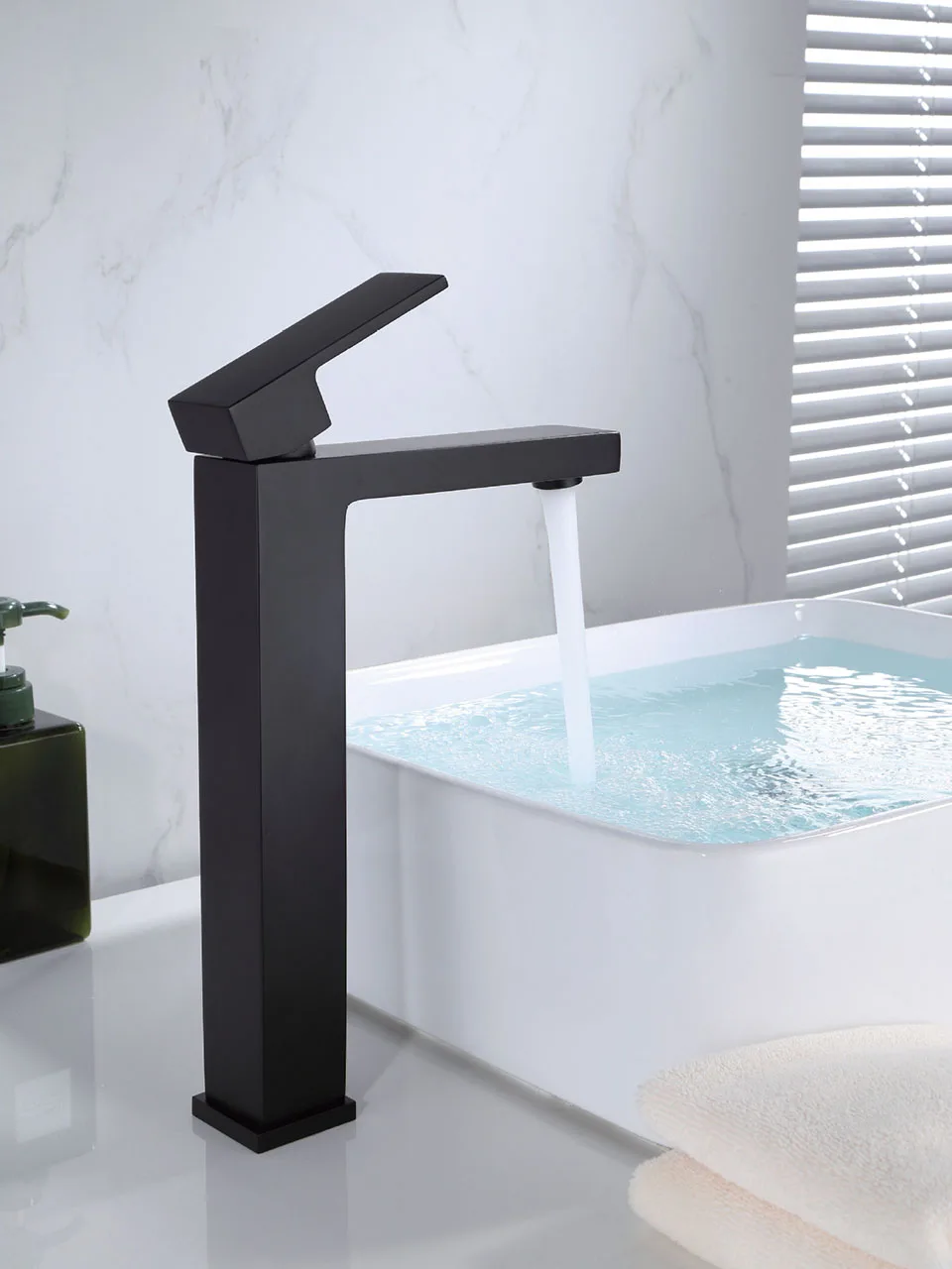 Смеситель для ванной комнаты, простой квадратный черный однотонный латунный кран для раковины, одно отверстие, хромированный водопроводный кран