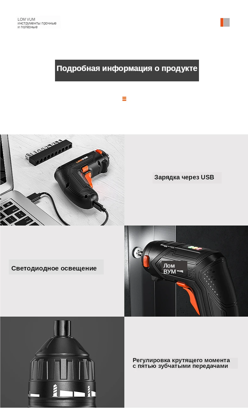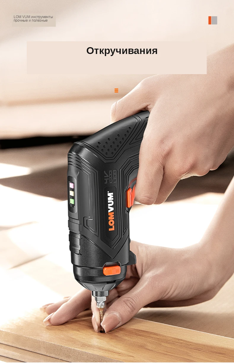 Шуруповерт LOMVUM аккумуляторный, 4 в, с зарядкой от USB