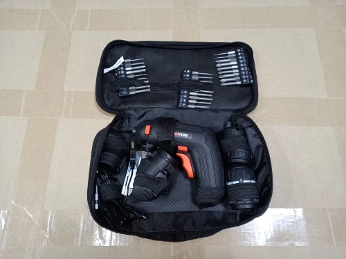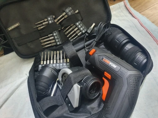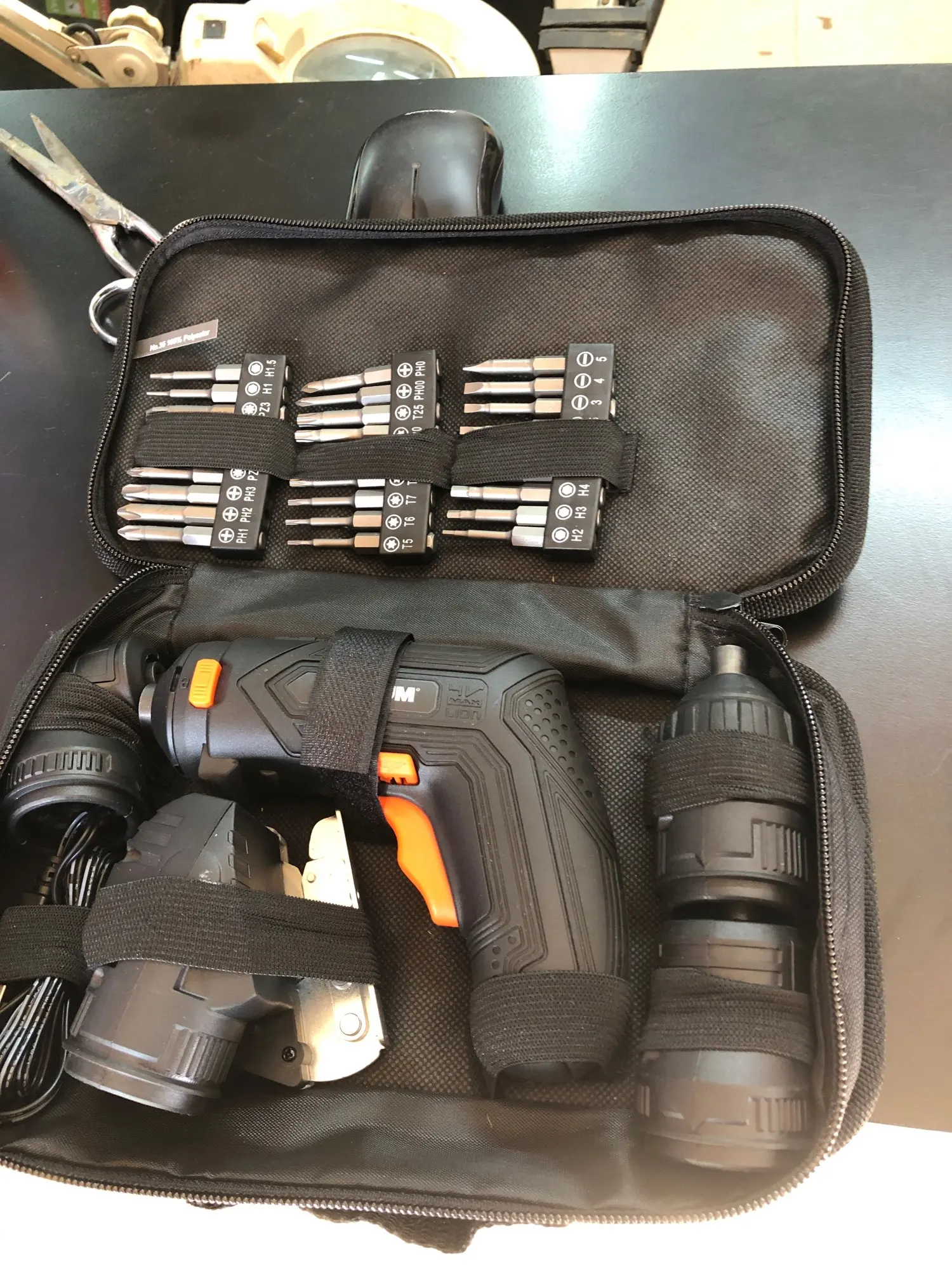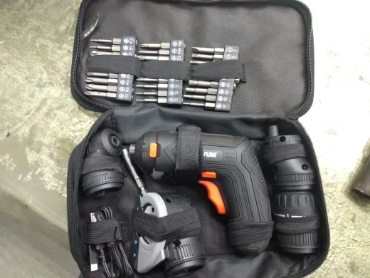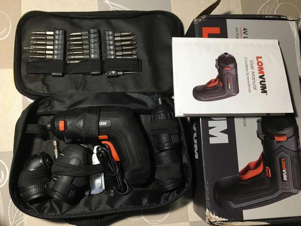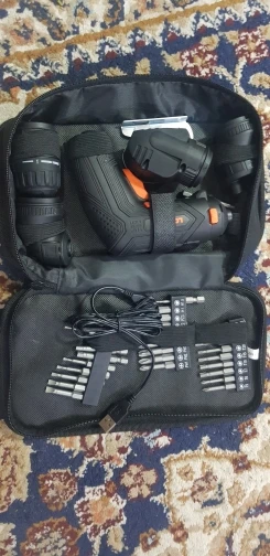 Посылка пришла быстро, шуруповерт работает хорошо, отличная комплектация. Был небольшой косяк в чехле, оторван ремешок крепления отвертки, но это не кретично.