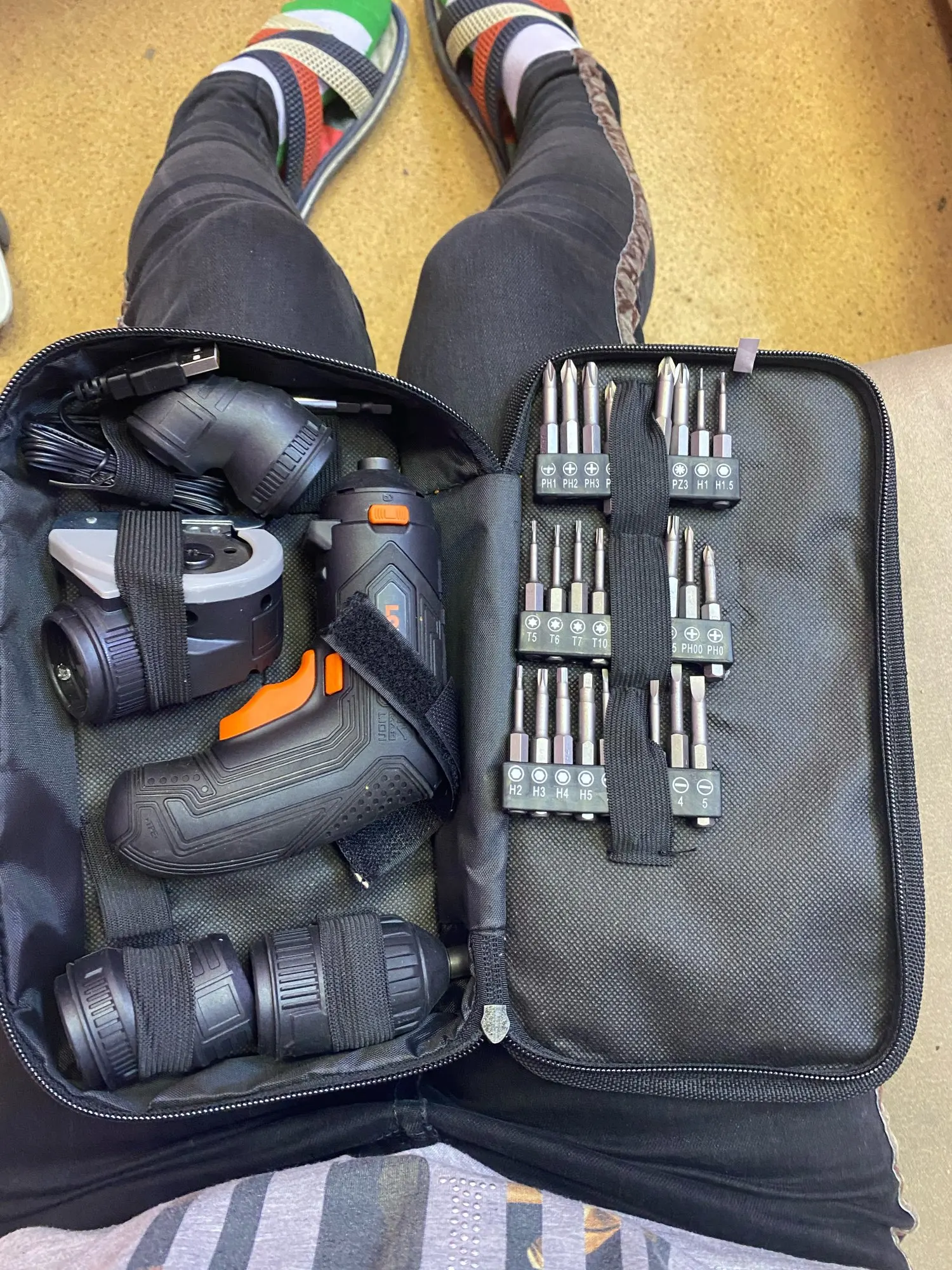 Неплохой гаджет, сделан прочно, много разных бит, ничего не болтается, сумочка маленькая, все умещается. Покупкой доволен!
