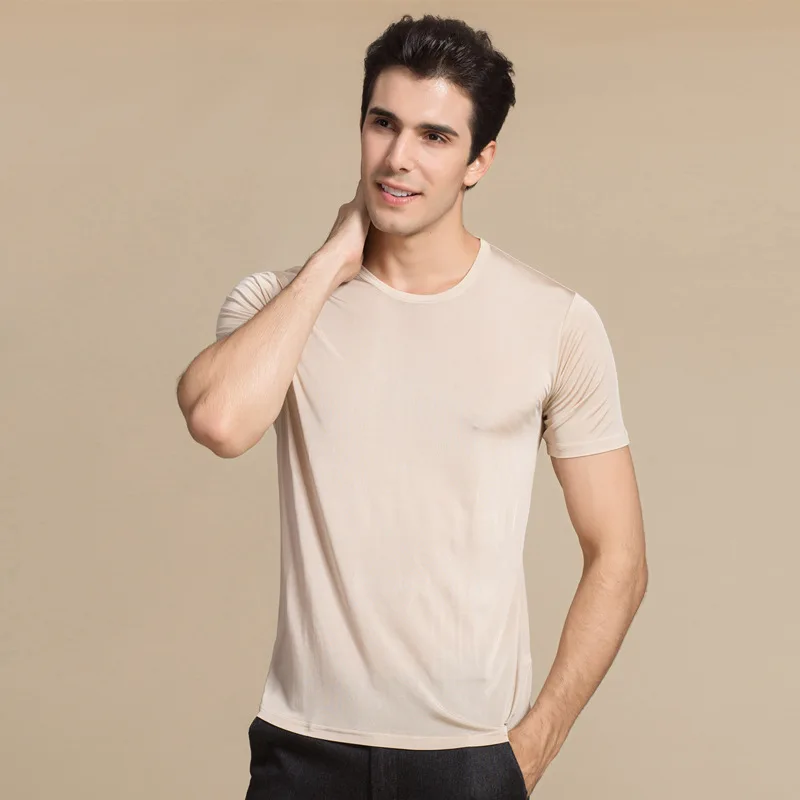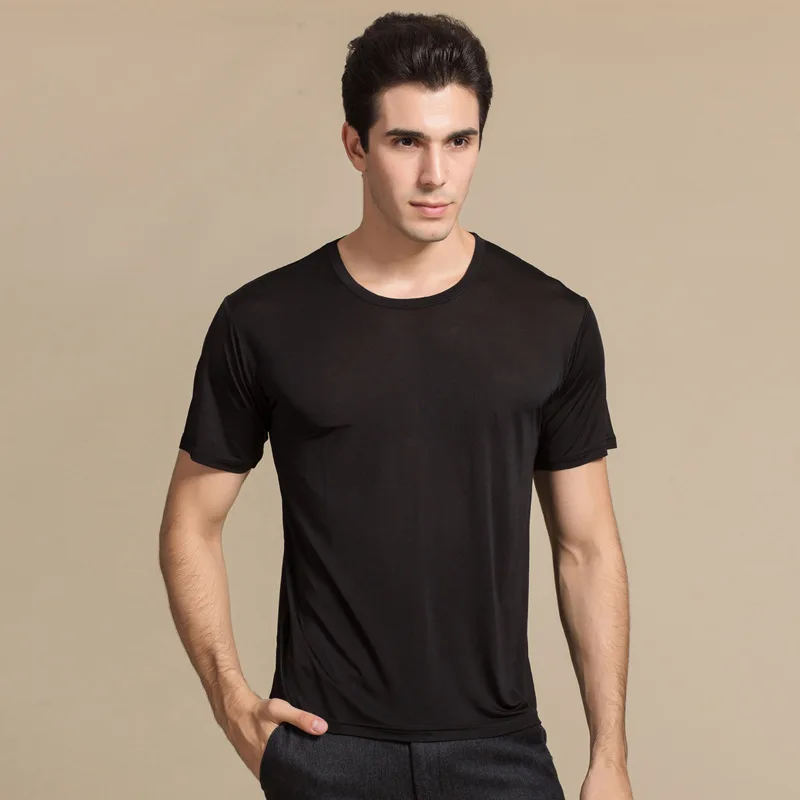 Качественные Трикотажные мужские футболки из 100% шелка тутового шелкопряда с коротким рукавом и круглым вырезом размера плюс HY006