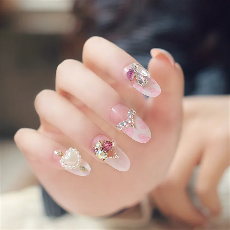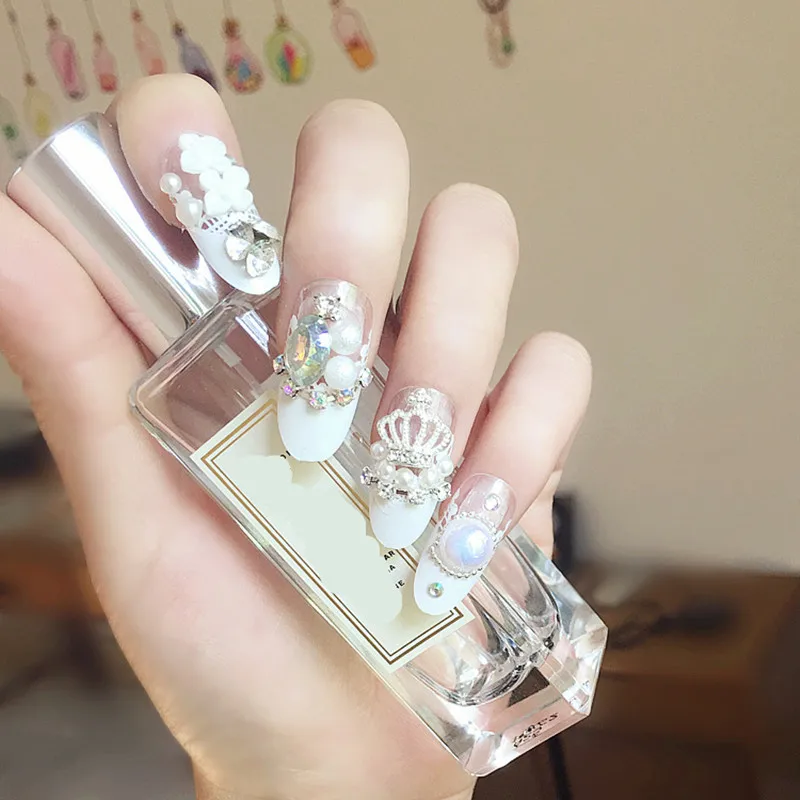 24 шт. Роскошные Блестящие Свадебные накладные ногти прозрачные блестящие драгоценные камни Корона дизайн квадратные полностью короткие накладные ногти искусство невесты