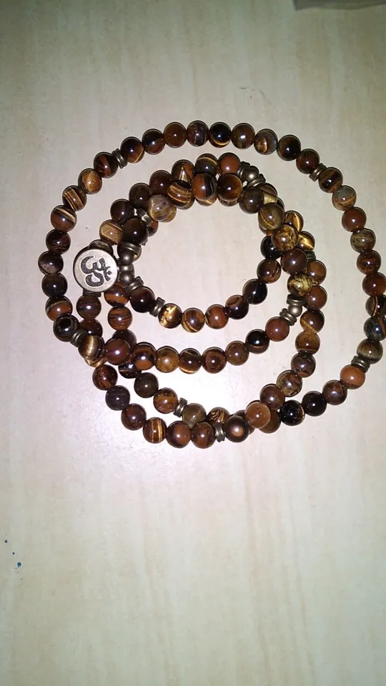 8 мм тигровый глаз нить с каменными бусинами Браслет Чакра или ожерелье Йога Лотос Ом Будда 108 Мала браслет для мужчин и женщин