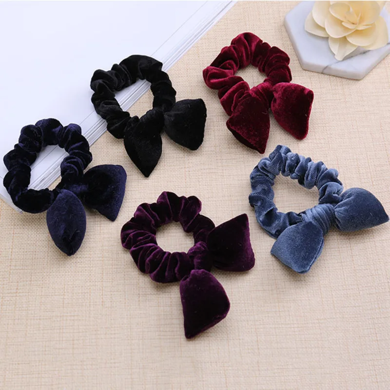 Новинка, Кролик уши бархат резинка для женщин из кожи высокого качества, повязка на голову, резинки для волос для девочек, белого цвета; Бесплатная волос резиновые аксессуары