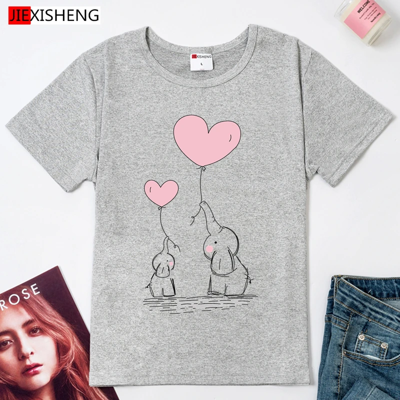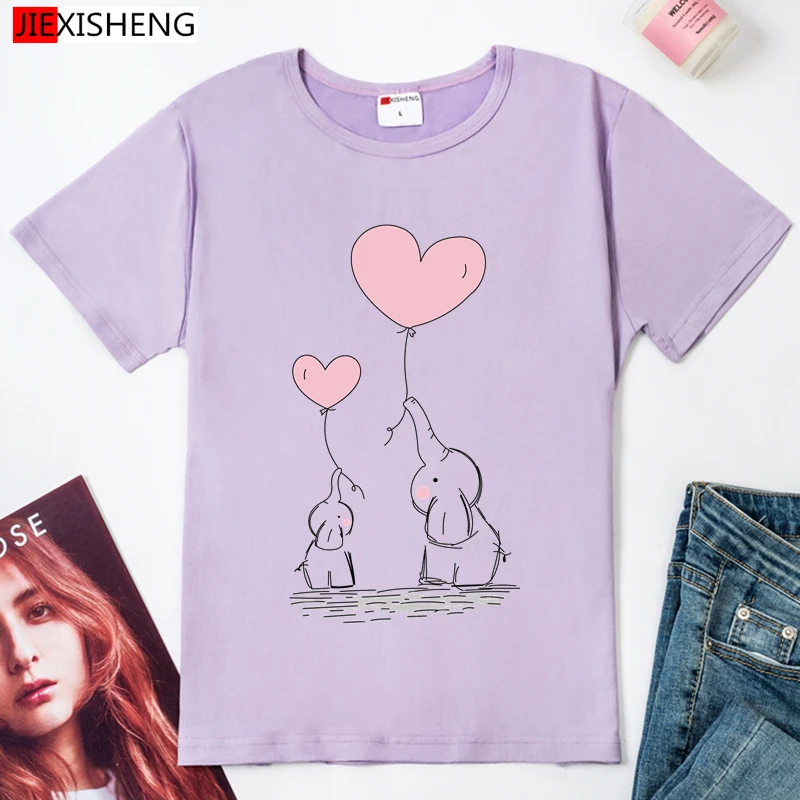 Футболка женская с милым принтом слона и воздушных шаров, смешной Повседневный Топ с коротким рукавом, размера плюс, лето 2020