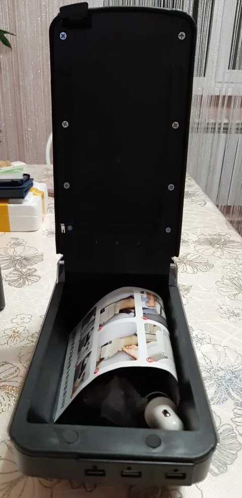 Товар пришел хорошо запакованный, в посылке был еще провод и автомобильное зарядное устройство. Качество самого подлокотника выше среднего, крепится не плотно если просто поставить, в комплект также идут саморезы ими как раз и крепиться основательно в туннель, как по мне не очень эстетично Усб, зарядное и провод рабочие. Пластик по бокам царапает руку с обоих сторон пришлось снять. ручник выдергивать не совсем удобно.
