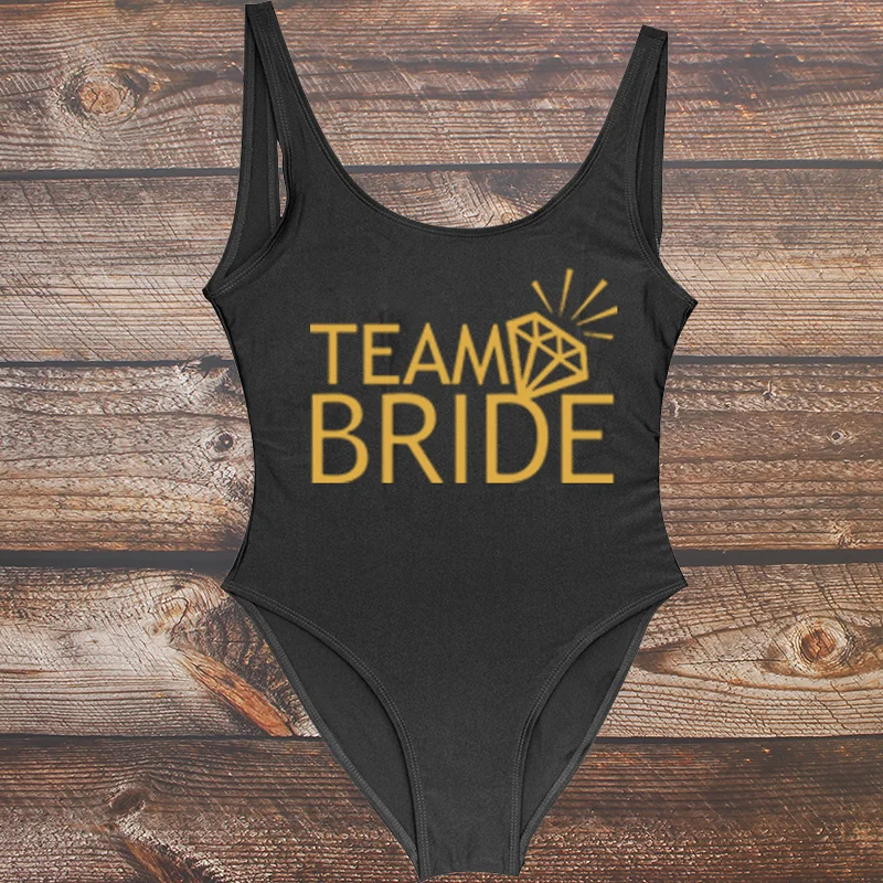 Женский слитный купальник Team, купальный костюм золотистого цвета со стразами и буквенным принтом для невесты, для свадьбы, 2019
