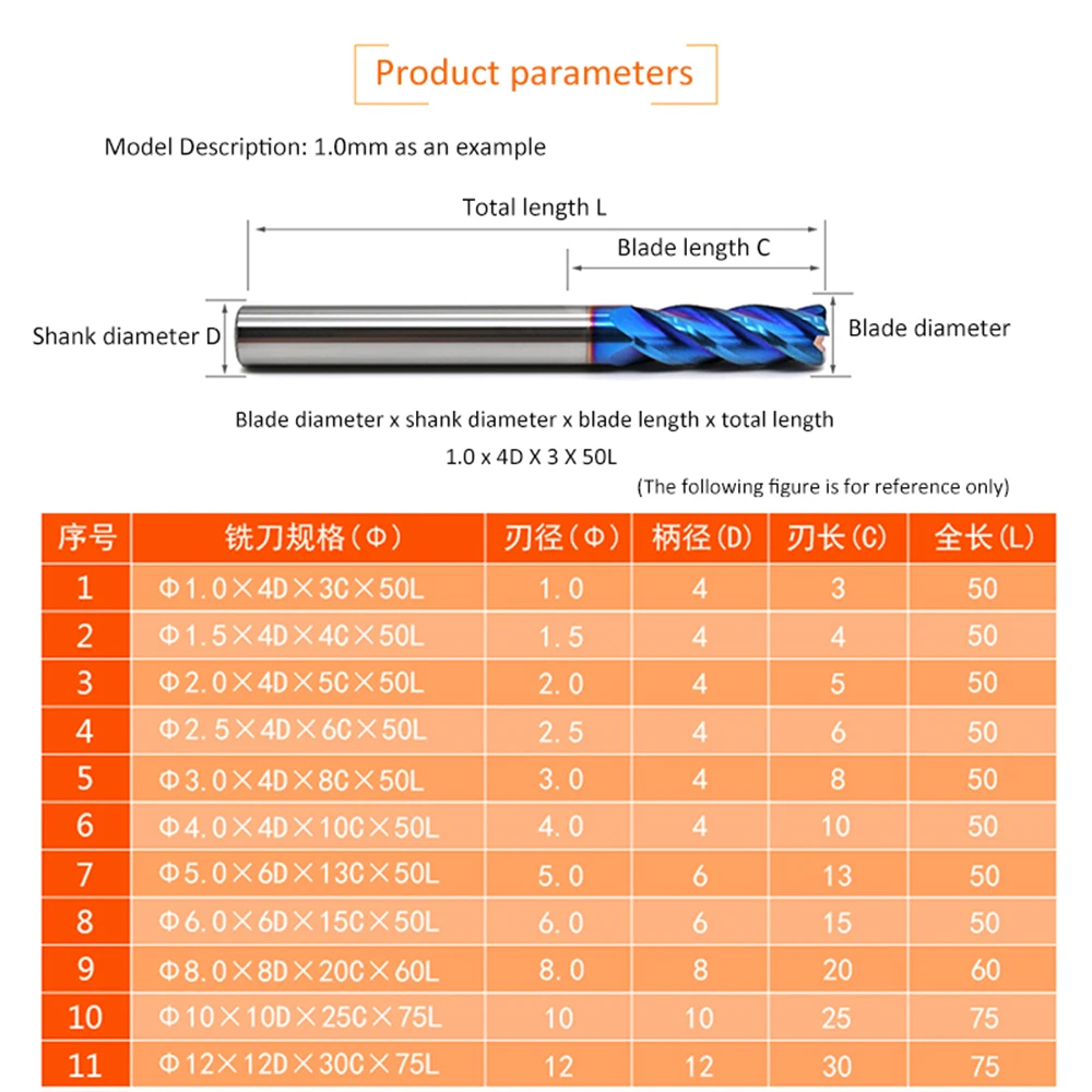 Концевая фреза HRC65, карбидная фреза из сплава, D1mm-12mm 1,5 мм, 2 мм, 3 мм, 4 мм, 5 мм, 6 мм, 8 мм, 1 шт.