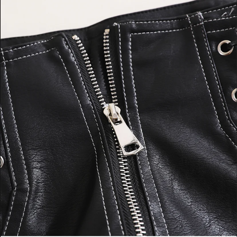 Модные осенние новые черные кожаные шорты MUMUZI в европейском стиле с широкими штанинами, простой дизайн, повседневные женские шорты с завышенной талией и молнией спереди