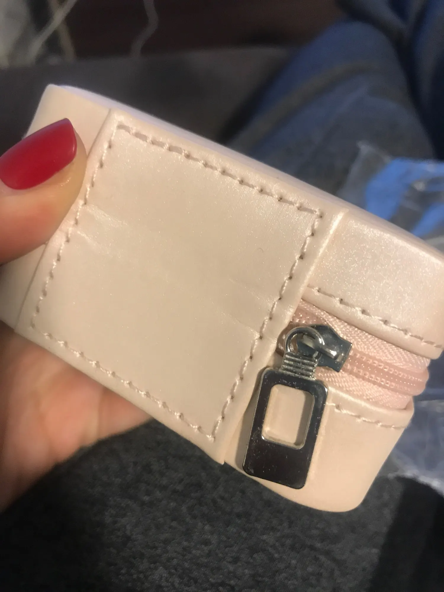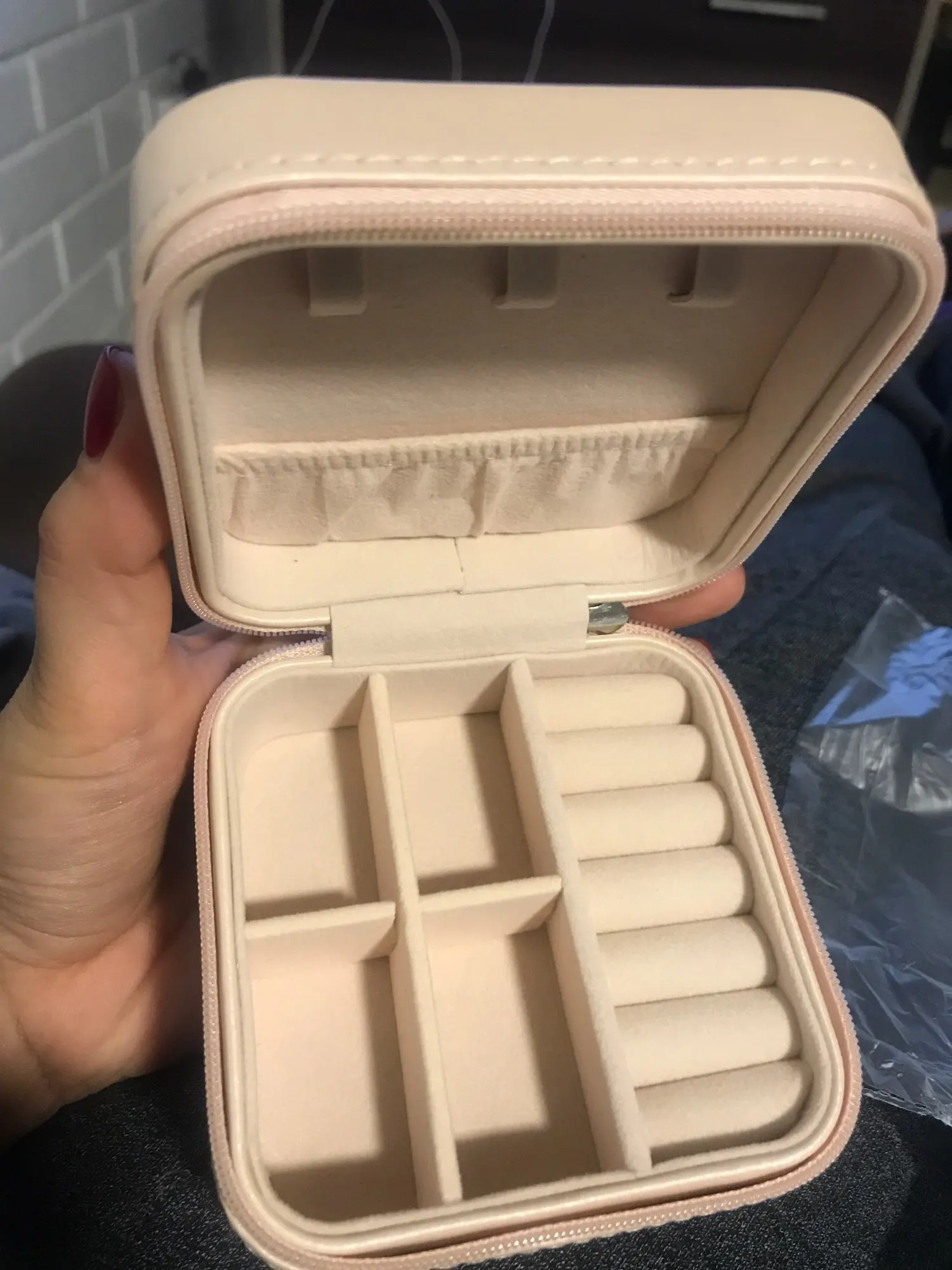 Приятный цвет, светло-розовый, как показано на фото. Удобно носить чокеры, серьги и кольца во время путешествия. Занимает мало места. Застежка-молния, идеально подходит для того, чтобы не открываться в чемодане. Качеств., выгодно.
