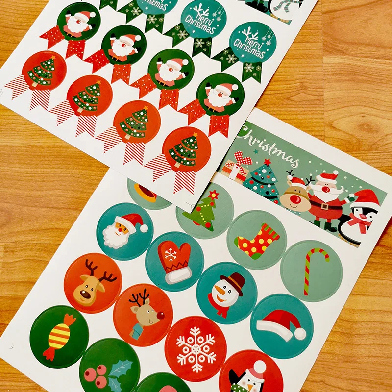 В этой красочной коллекции круглые наклейки представлены различные праздничные темы. Такие как MerryРождество, олень, снежинки, Санта, дерево, чулок и т. Д.