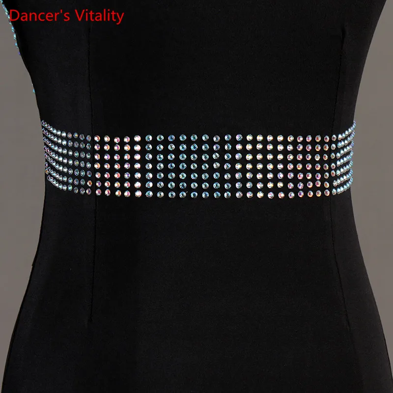 Платье для современных танцев, юбка со стразами и блестками, одежда...