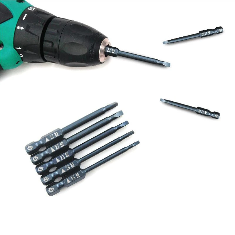 Набор ударных насадок для отверток, комплект из 5 магнитных треугольных насадок сделай сам из стали S2, 1,8, 2, 2,3, 2,7, 65 мм, с шестигранным хвостовиком