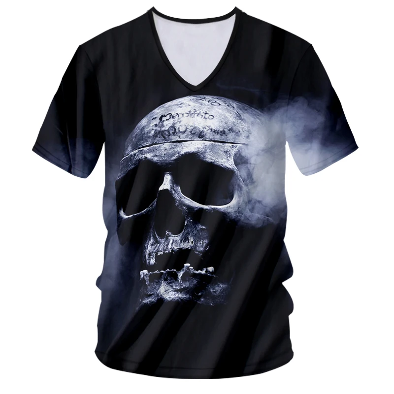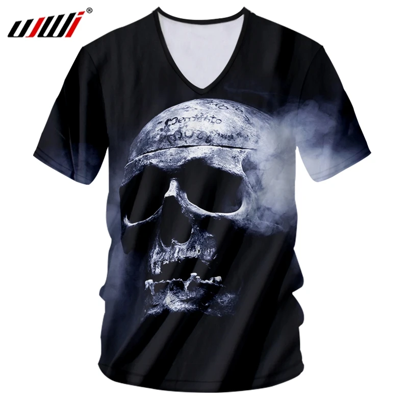 UJWI Мужская футболка в стиле хип-хоп с v-образным вырезом, таинственная Дымчатая футболка с рисунком черепа, футболка с 3D принтом, индивидуальная футболка в стиле панк-рок, большой размер 6XL