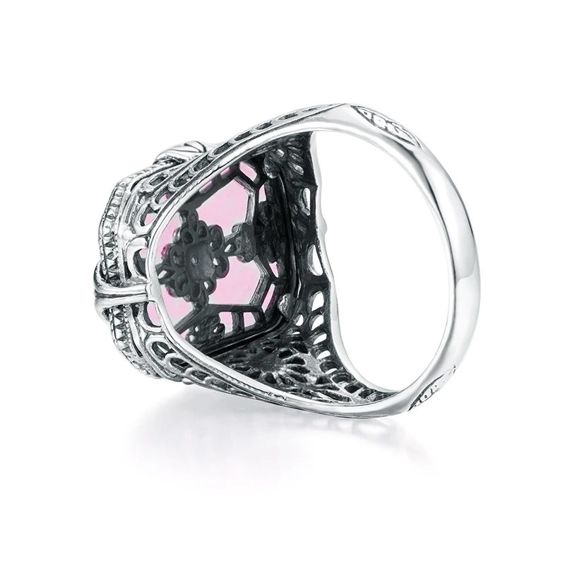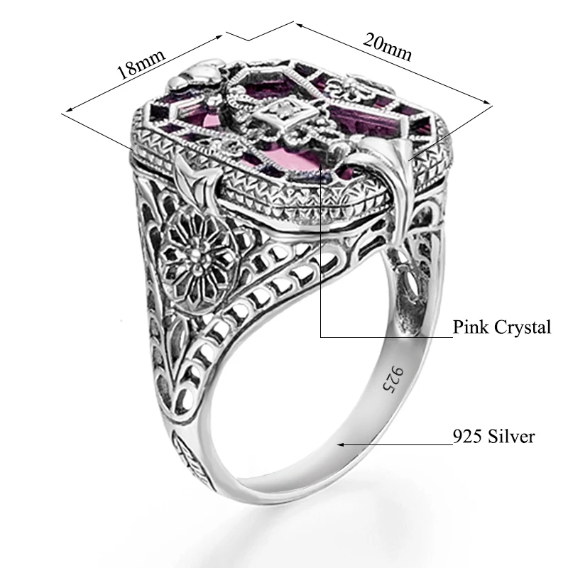 Металл: 100% 925 пробы сереброКамень: синтетический розовый кристаллРазмер камня: 18*20 ммЦвет камня: розовыйЦвет металла: античное сереброСтиль: винтажныйШтамп: 925