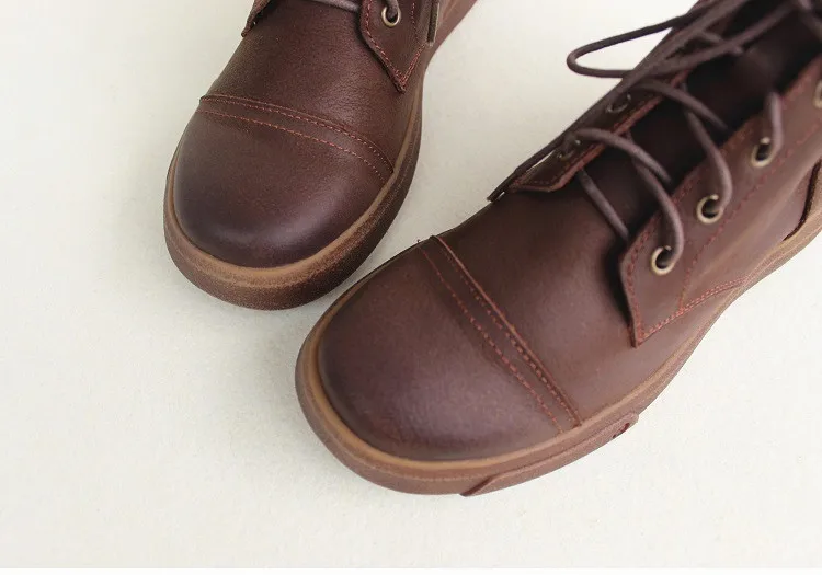 Женские ботильоны из натуральной кожи, с круглым носком, на шнуровке