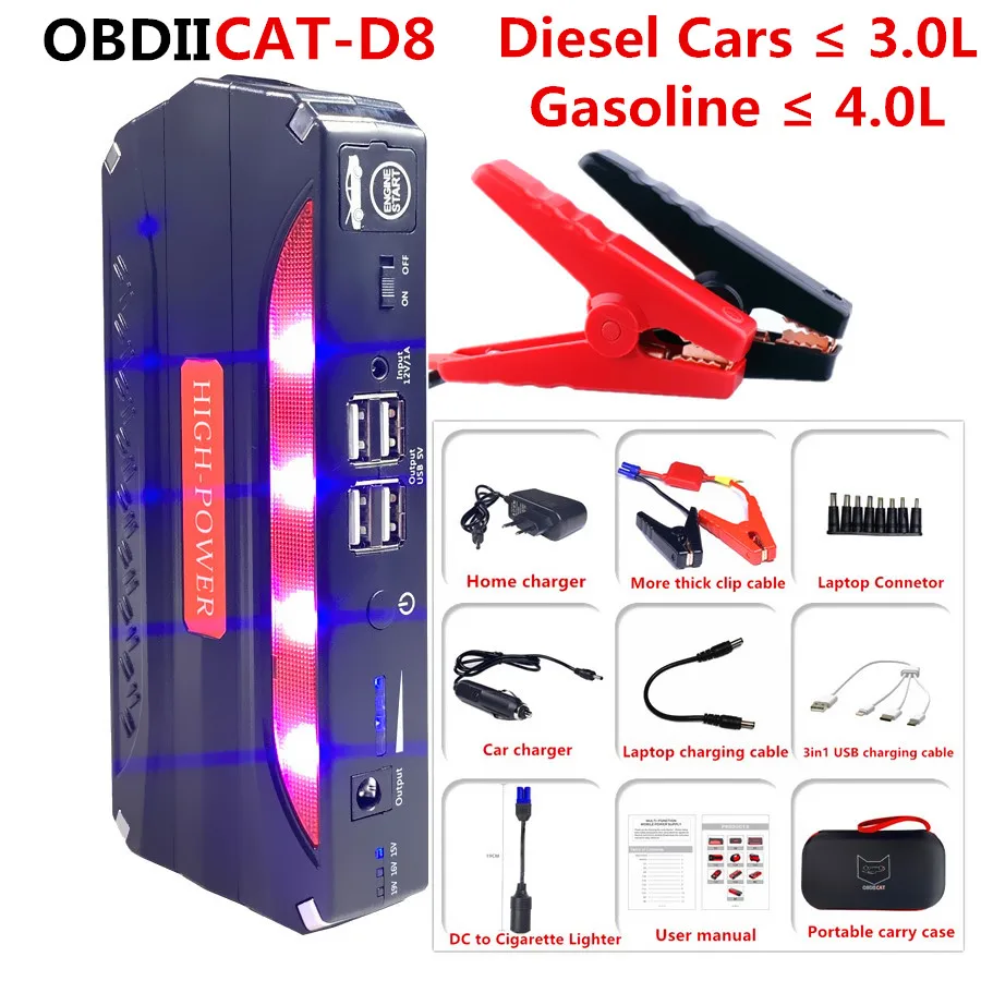 OBDIICAT-D8 D16 многофункциональный автомобильный стартер аварийный автомобильный аккумулятор мини портативный внешний аккумулятор 600A пиковый ток