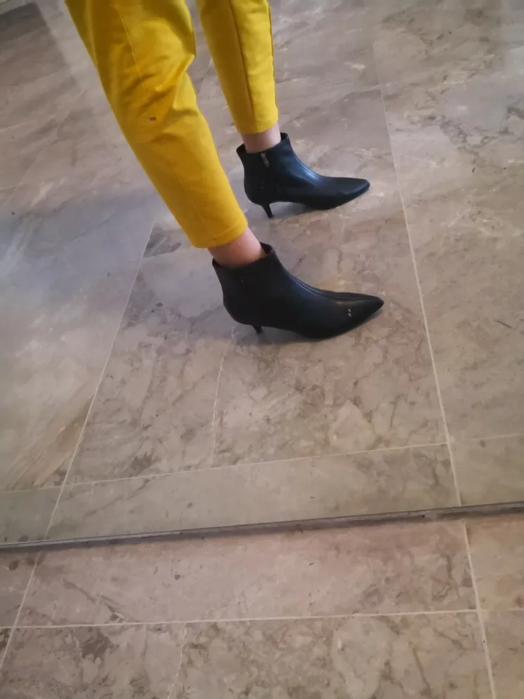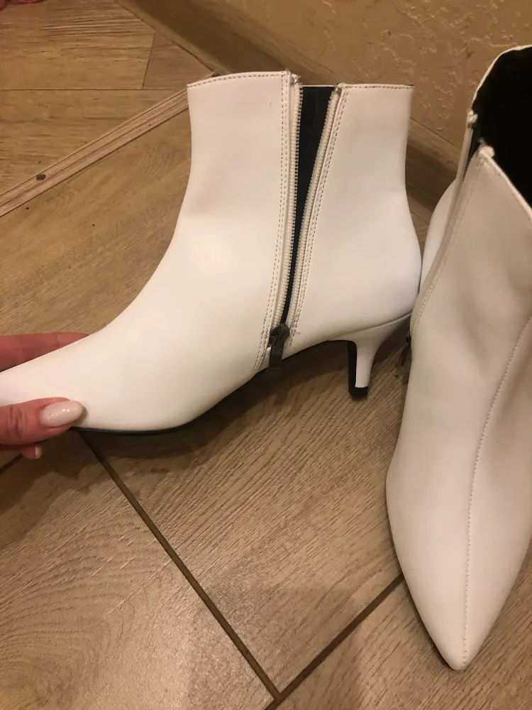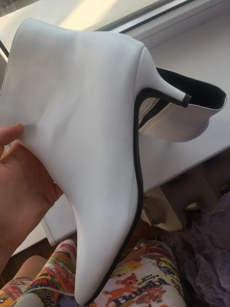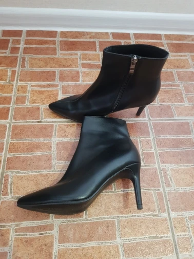 Ботильоны очень классные! Несмотря на кожзам, они очень мягкие и комфортные (каблук 5 см). На российский 39 размер, к сожалению, оказались малы. Размерная таблица у продавца верная. Оформила бесплатный возврат. Деньги вернули через 5 дней после отправки. Обязательно закажу еще раз в подходящем размере.