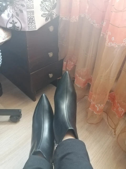 Отличные ботинки за такие деньги. Кожзам очень мягкий, колодка удобная, каблук устойчивый. Выглядят прекрасно! Есть запах, но уверена, что выветрится. Размерная сетка правильная - на 24,5см(рос 38) заказала 39, идеально.