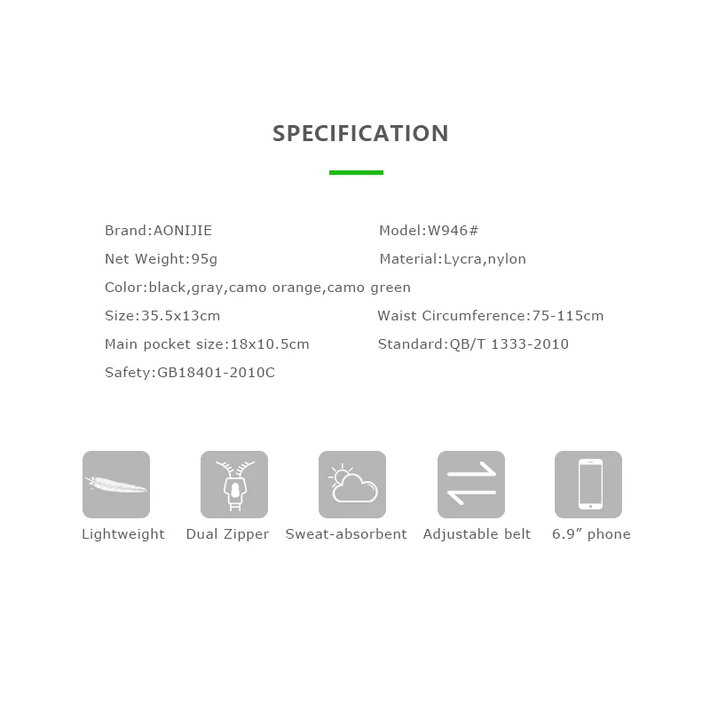 Поясной ремень AONIJIE W946 Регулируемый тонкий для бега, забавная дорожная сумка для бега, марафона, тренажерного зала, фитнеса, 6,9 дюйма