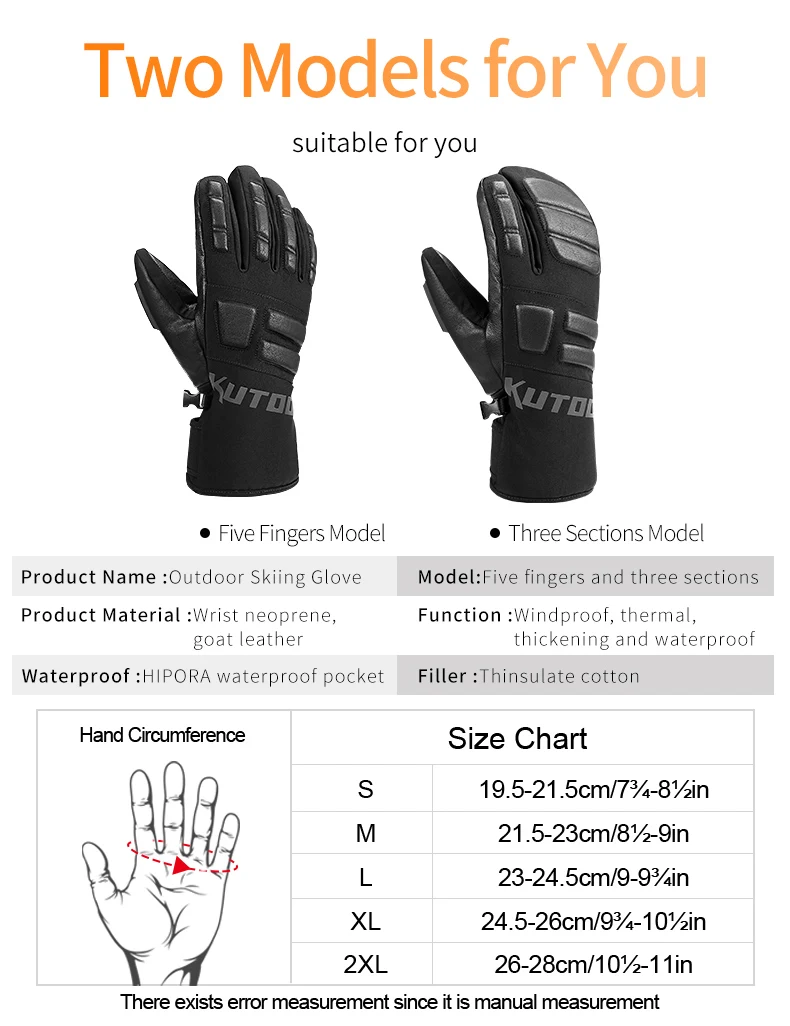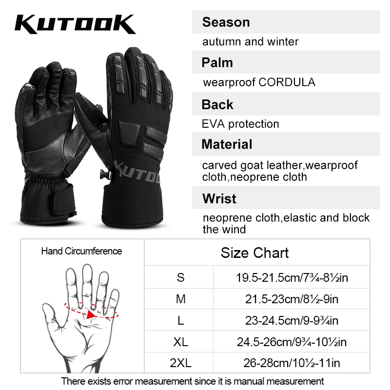 Перчатки KUTOOK, лыжные, козья кожа, зимние, водонепроницаемые, ветрозащитные