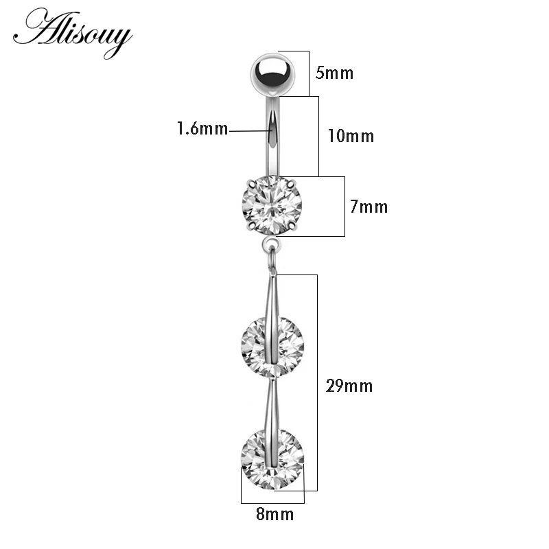 Alisouy 1 шт. стальное кольцо для пупка пирсинг циркон горный хруст...