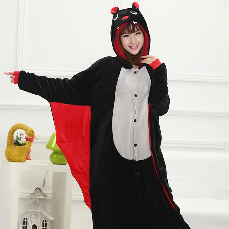 Костюм кигуруми для взрослых на Хэллоуин, черный костюм летучей мыши для женщин, вечерние комбинезоны из аниме, фланелевые рождественские пижамы