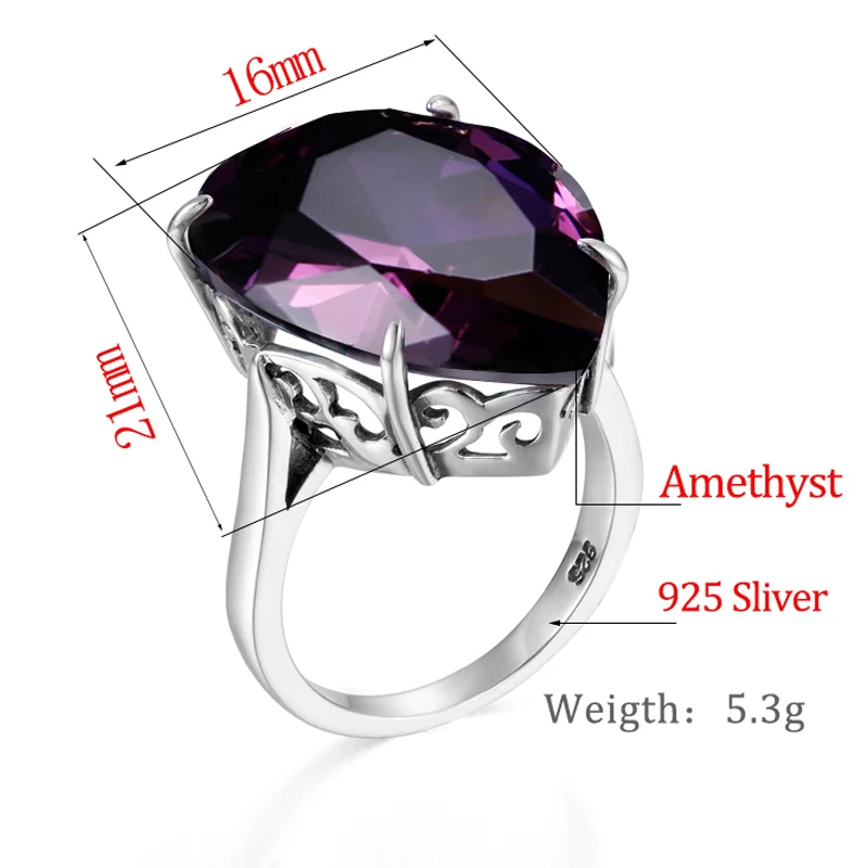 Кольцо SzjinAo с аметистом 16*21 мм, однотонное украшение из серебра 925 пробы для женщин, красивое винтажное украшение, рождественский подарок, 2021