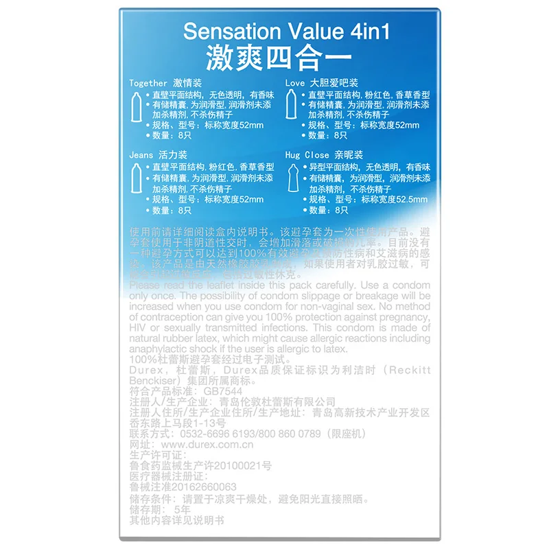 Презервативы Durex мужские ультратонкие, 4 вида, натуральный латекс, со смазкой, смешанные ощущения, 4 в 1