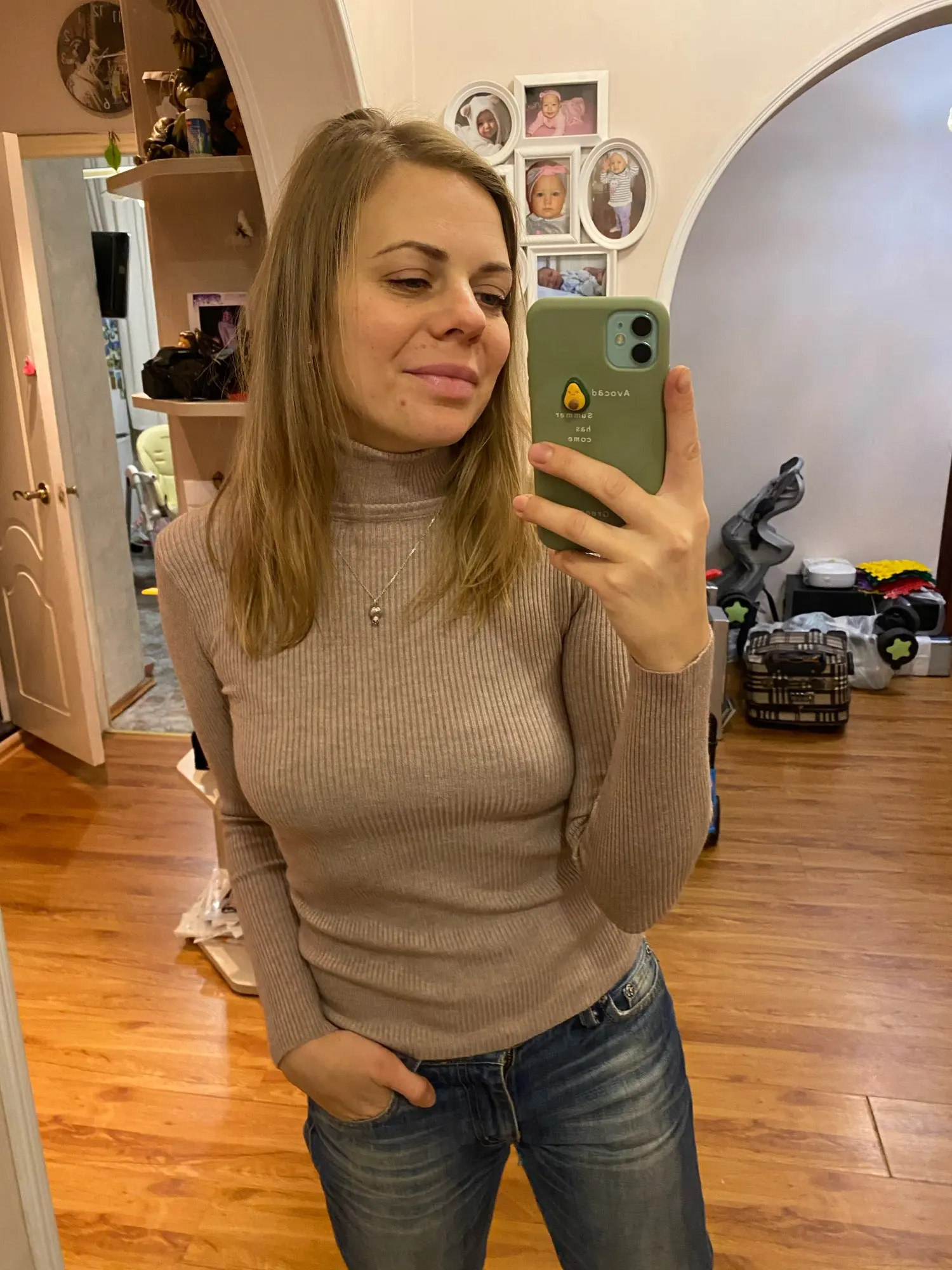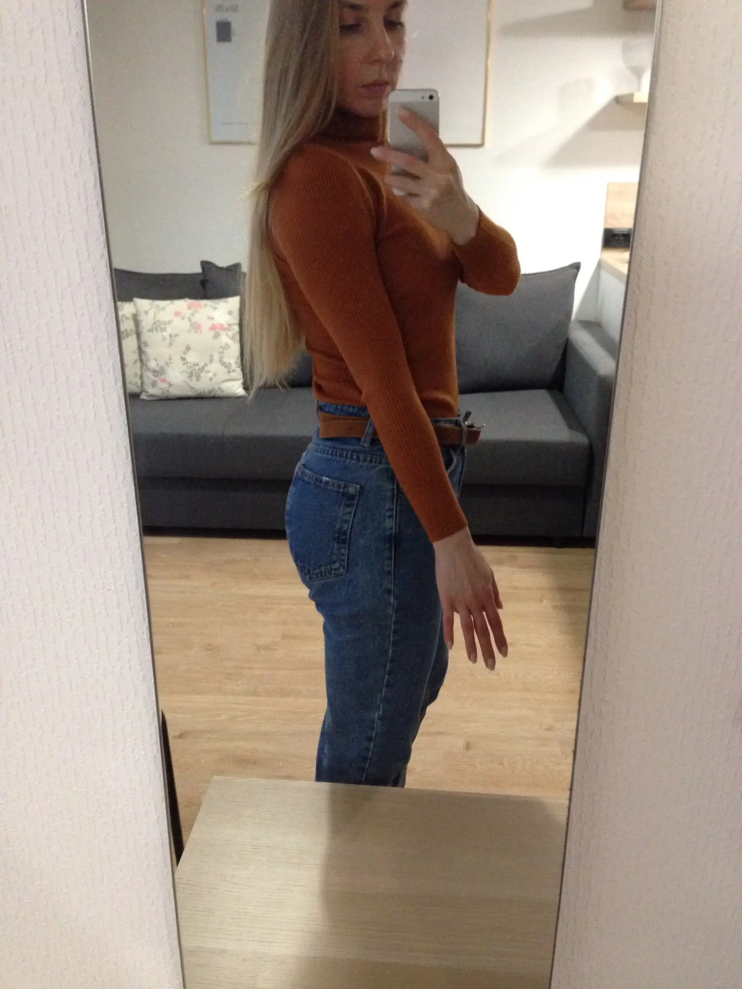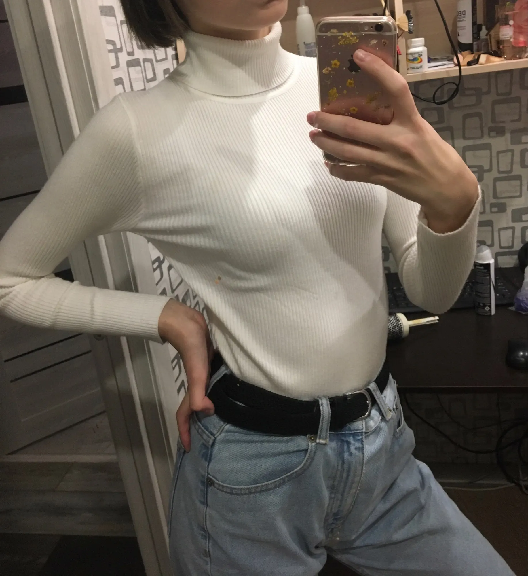 Теплый свитер водолазка. Очень приятный и мягкий. На осень и зиму в самый раз. в обтяжку, рукава немного коротковаты, но для моего роста в самый раз. Цвет молочный. Это уже 3 третий из этого магазина. Оставлю фото старого свитера (каки, стирала только в машине, очень часто одевала, буду ещё носить). Во Франции пришла посылка за неделю. Мои параметры 157 см, 42 кг ог 82/ от 61/ об 78.