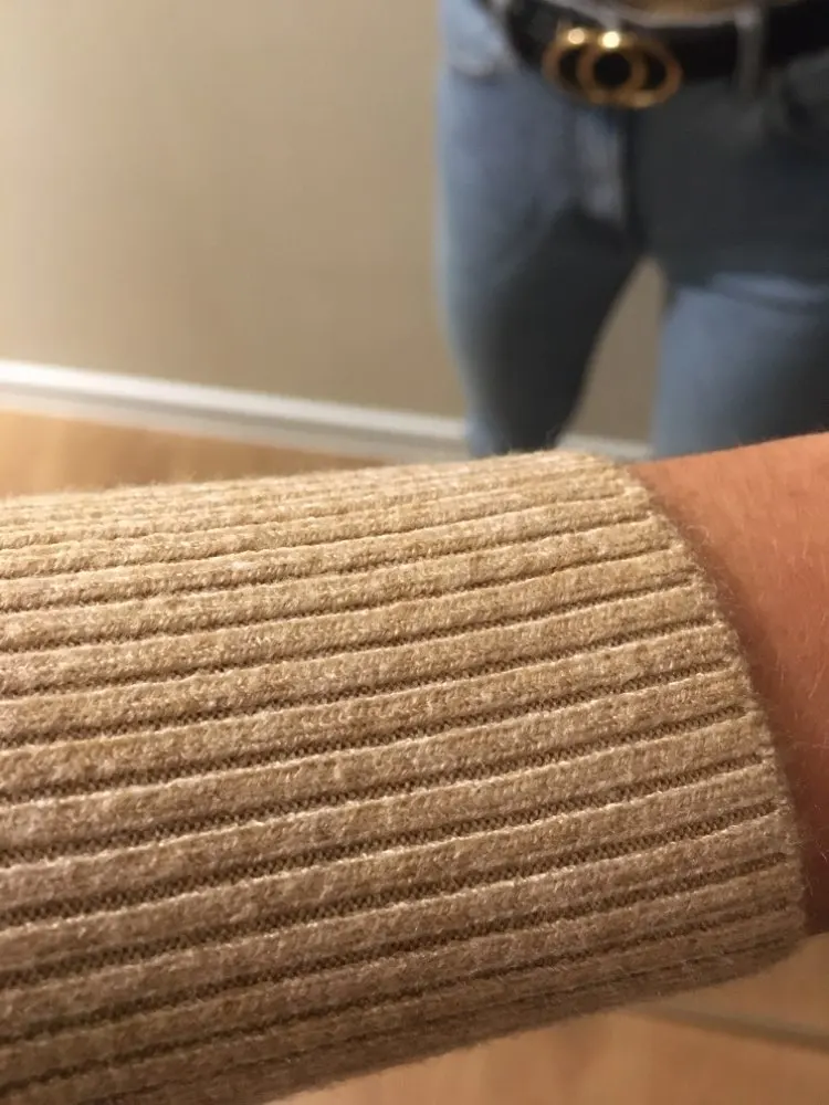 Очень приятный на ощупь свитер. Немножко маловат, короткие рукава, можно было брать больше на размер, буду закатывать)