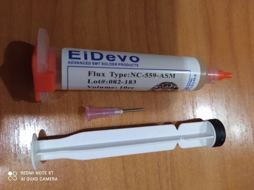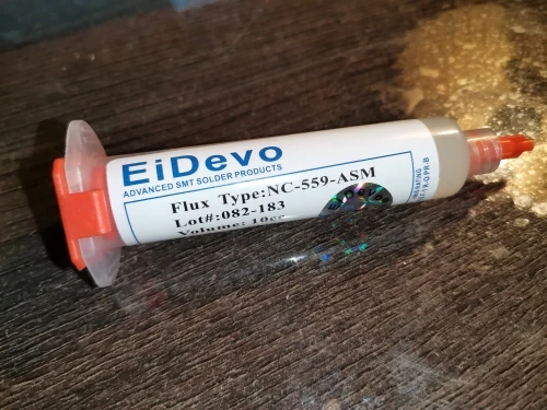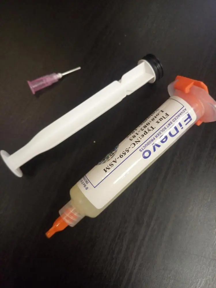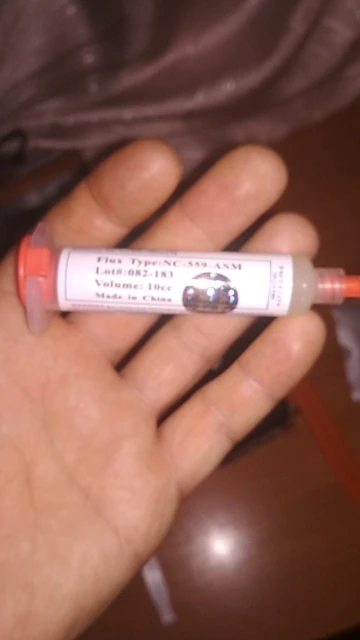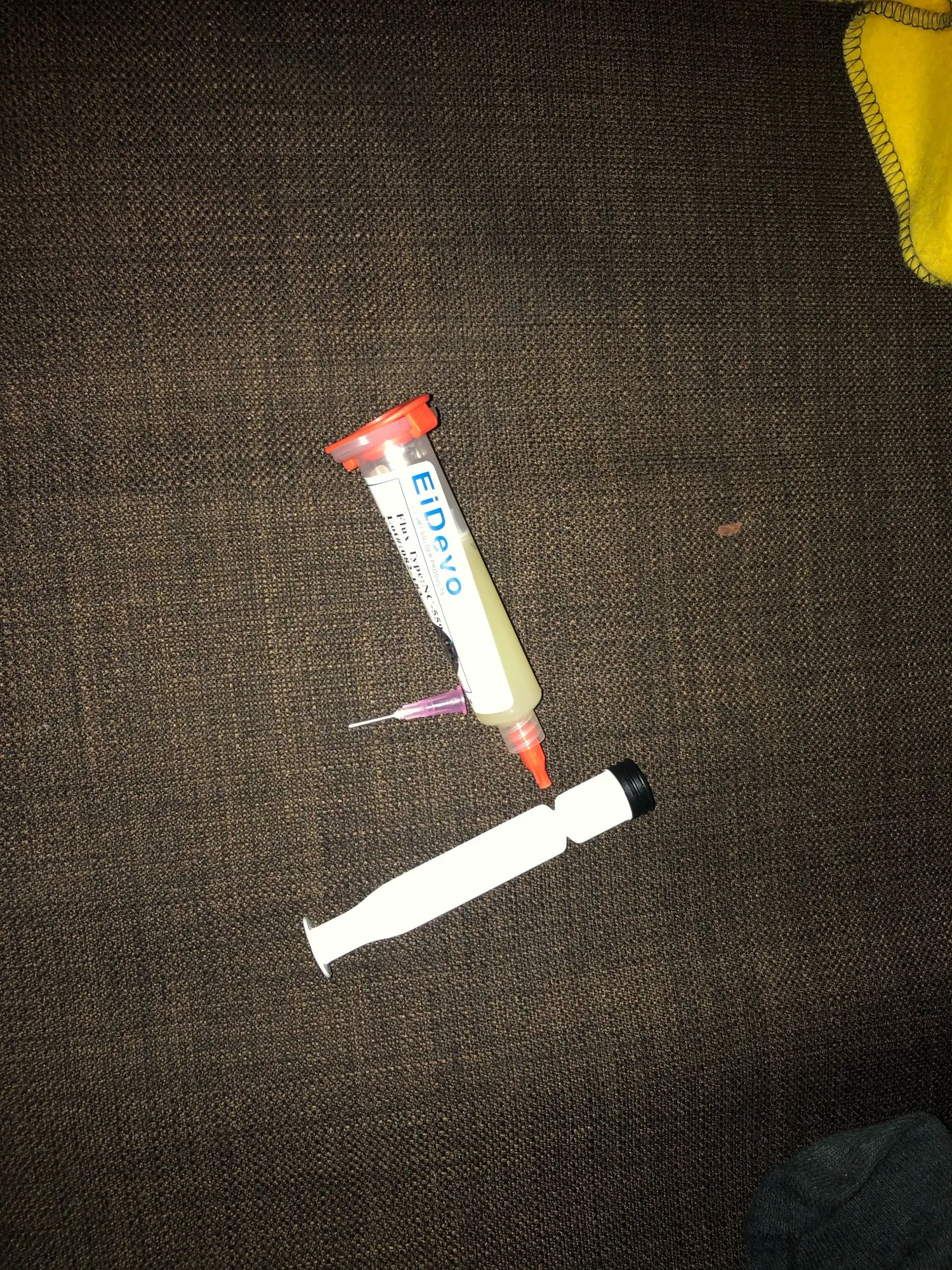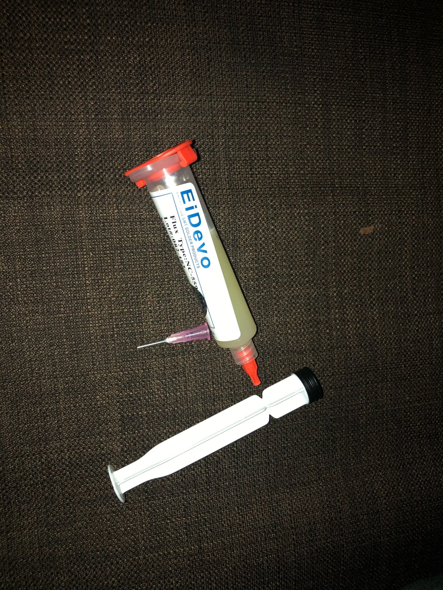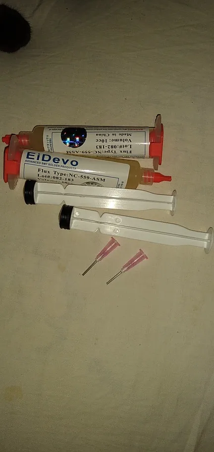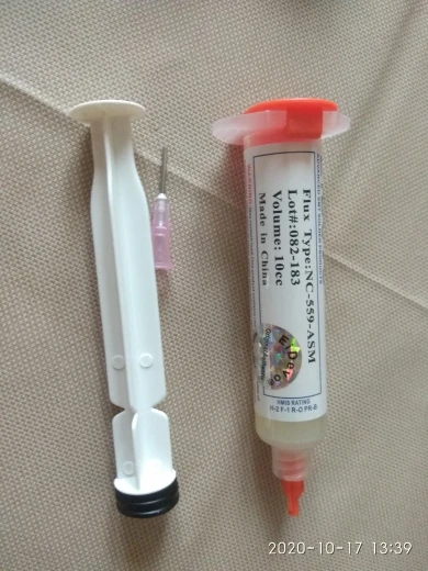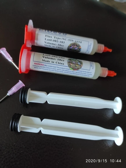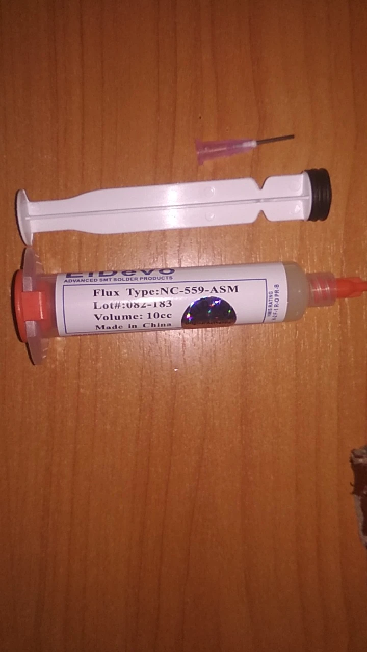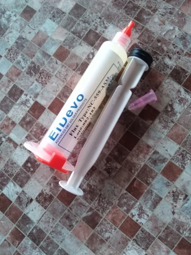 посылка шла 70 дней. трек не отслеживается. товар уже не думал получить, но вот он наконец-то пришёл. очень долго ждал этот флюс. этот тюбик очень удобен в применении, есть иголочка для дозированного распределения.