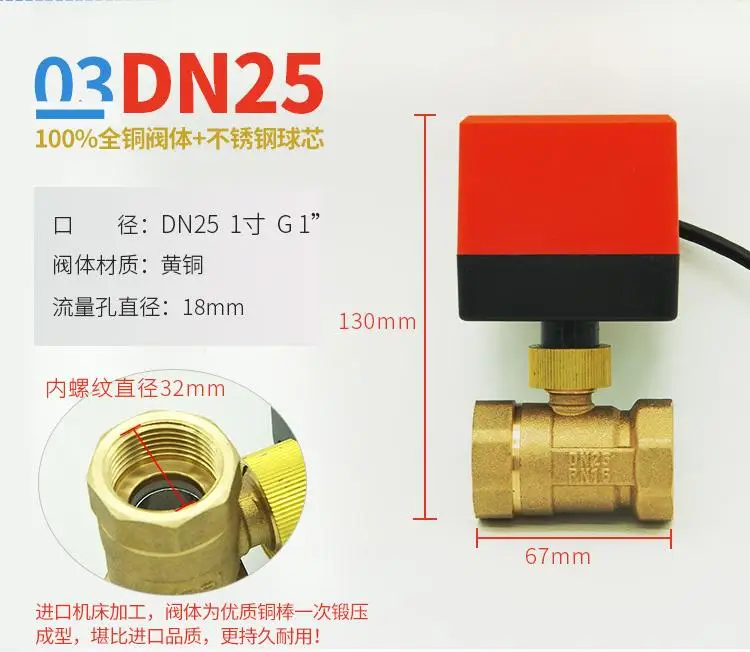 AC220V DC24V Электрический латунный шаровой кран, холодная и горячая вода/водяной пар/тепловой газ 2 пути латунный моторизованный шаровой клапан