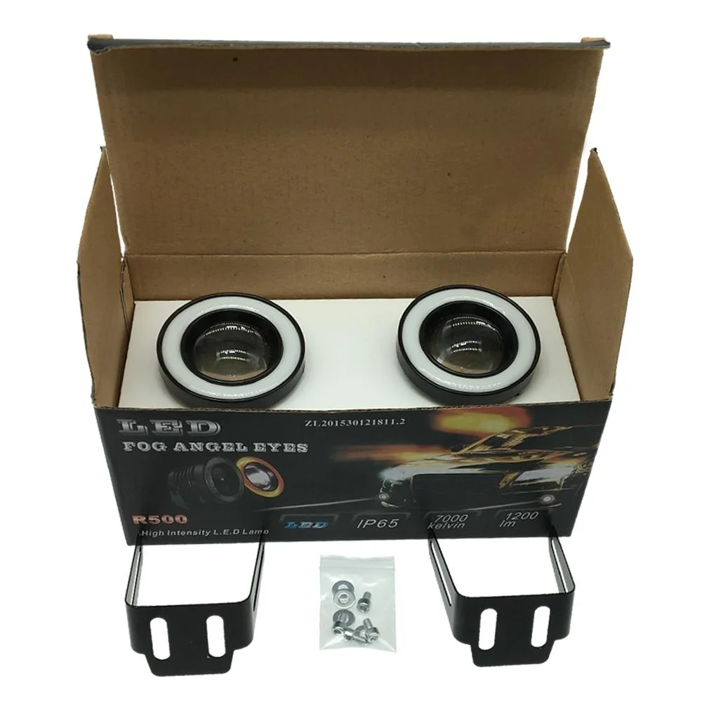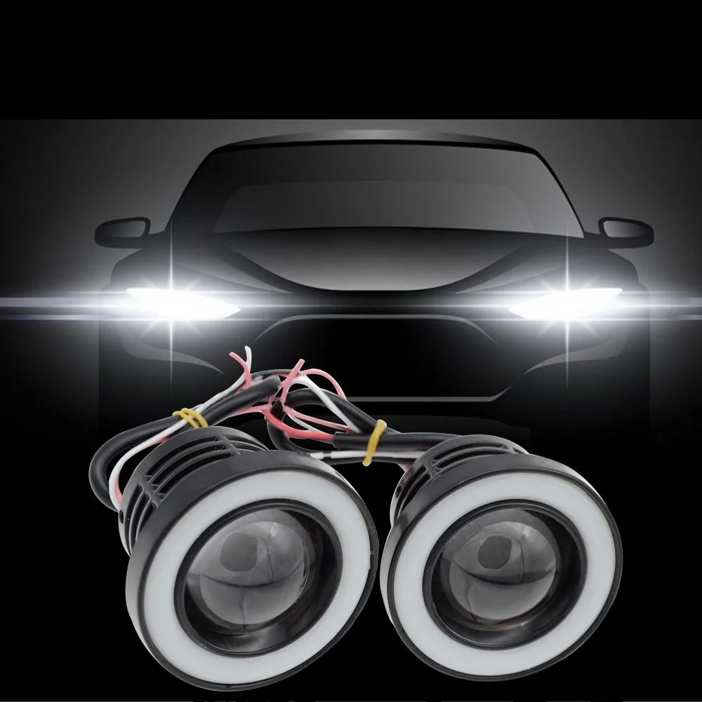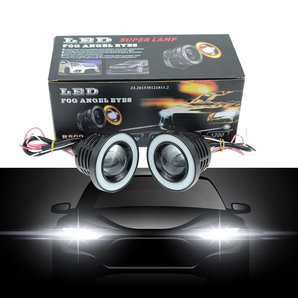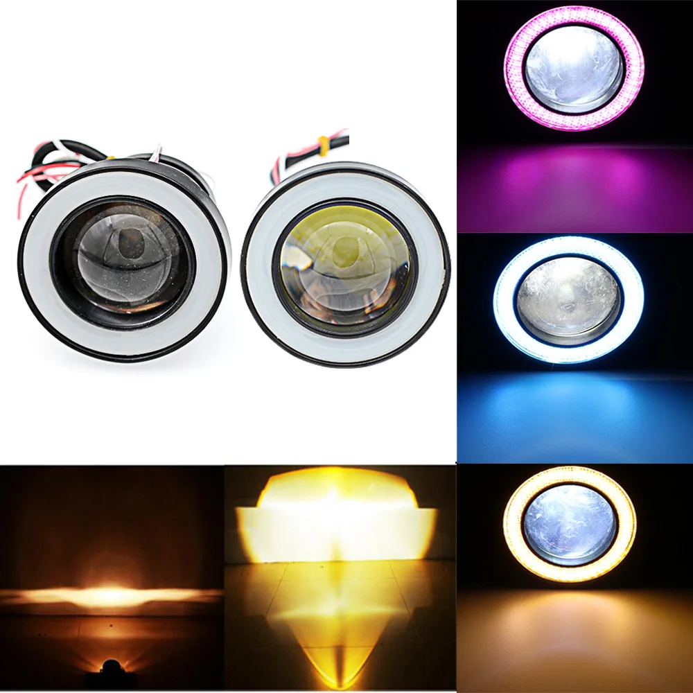 Автомобильные противотуманные фасветильник Angel Eyes COB, светодиодные, 2 шт., 64 мм, 76 мм, 89 мм, универсальные дневные ходовые огсветильник белого, красного, синего цветов, 30 Вт, 12 В постоянного тока