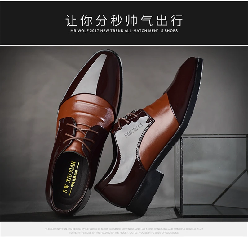 Туфли мужские из лакированной кожи, классические, черные, коричневы...