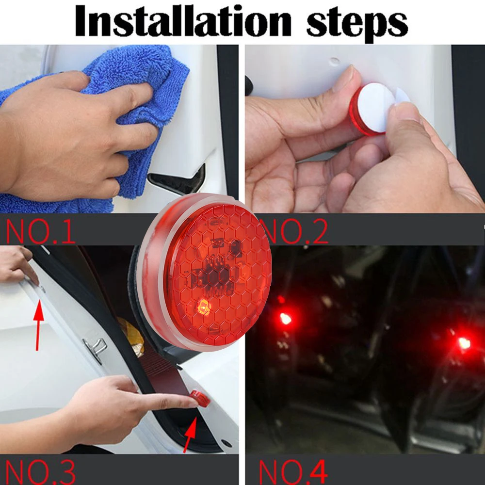 Посылка включает: 4x стикер 2x3V кнопочный аккумулятор 2x двери автомобиля светодиодный Предупреждение светильник