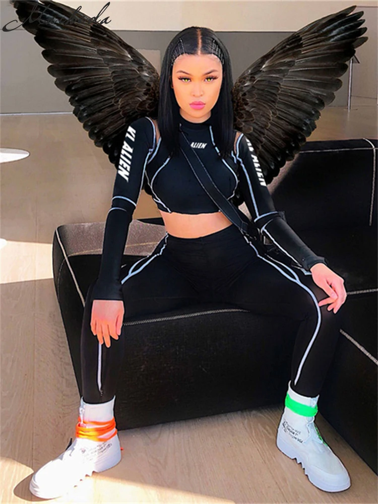 Сексуальная женская сетчатая майка с круглым вырезом длинным рукавом тонкий укорочённый облегающий топ с принтом буквами