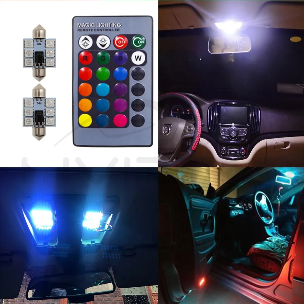 2 шт. RGB светодиодные лампы светильник ACDC 12V C5w 36 мм 5050 6SMD купол с фестонами светильник Авто Светодиодная передвижная Дистанционное управление Авто крыши Атмосфера лампы