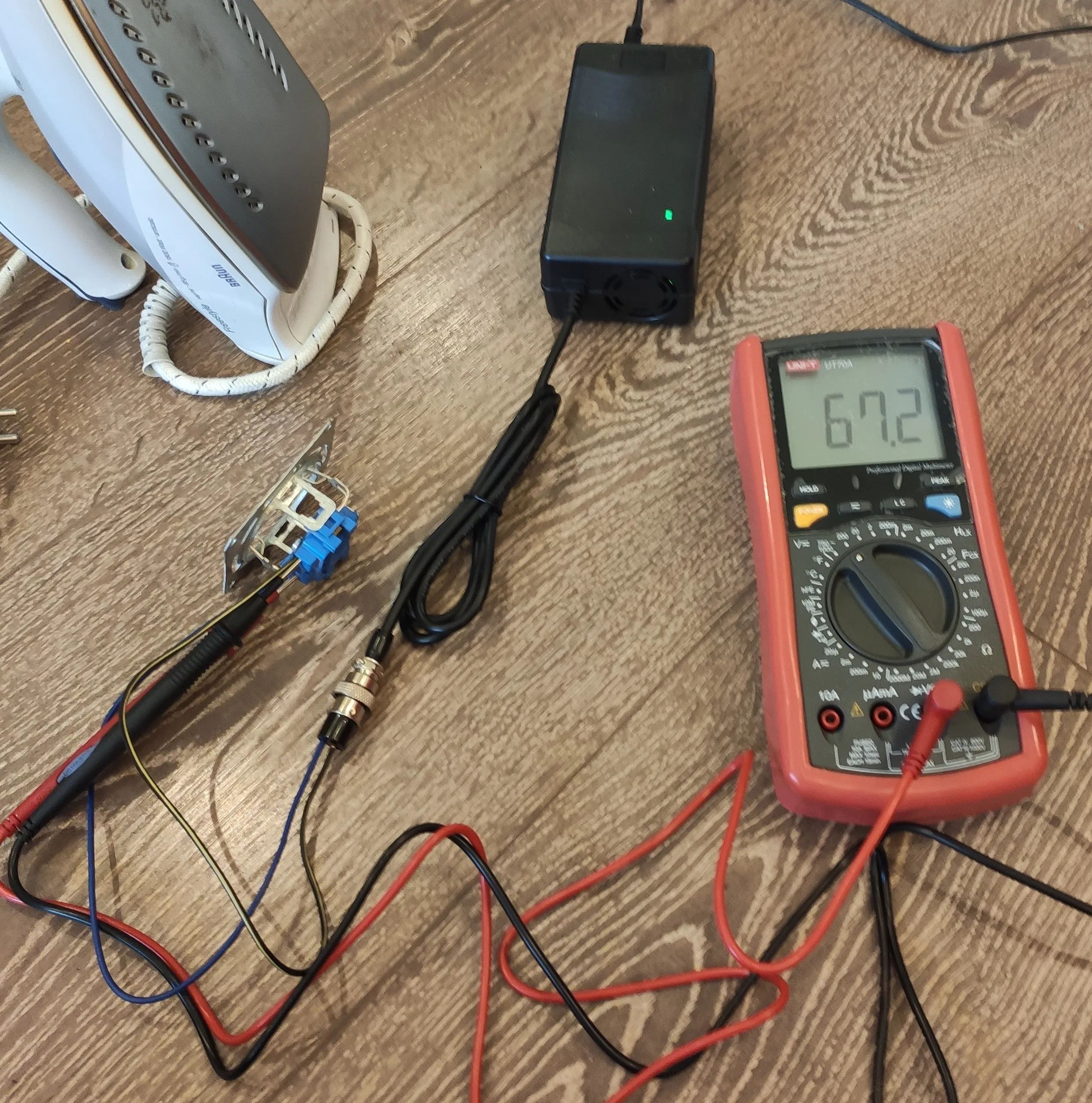 Получил в Питере через 17 дней после оплаты заказа. Товар полностью оправдал ожидания. Блок честно отдает под нагрузкой 144 ватта , раза в 2 по объему меньше штатного от КИНГА и настолько же легче. Корпус похоже склеенный, так что при замене вентилятора будут проблемы . Новый он почти не шумит, но скорее всего это ненадолго. При нынешней цене могу смело рекомендовать к покупке у данного продавца. 67.2в холостой ход 66.5в с нагрузкой утюгом при токе 2.14 ампер