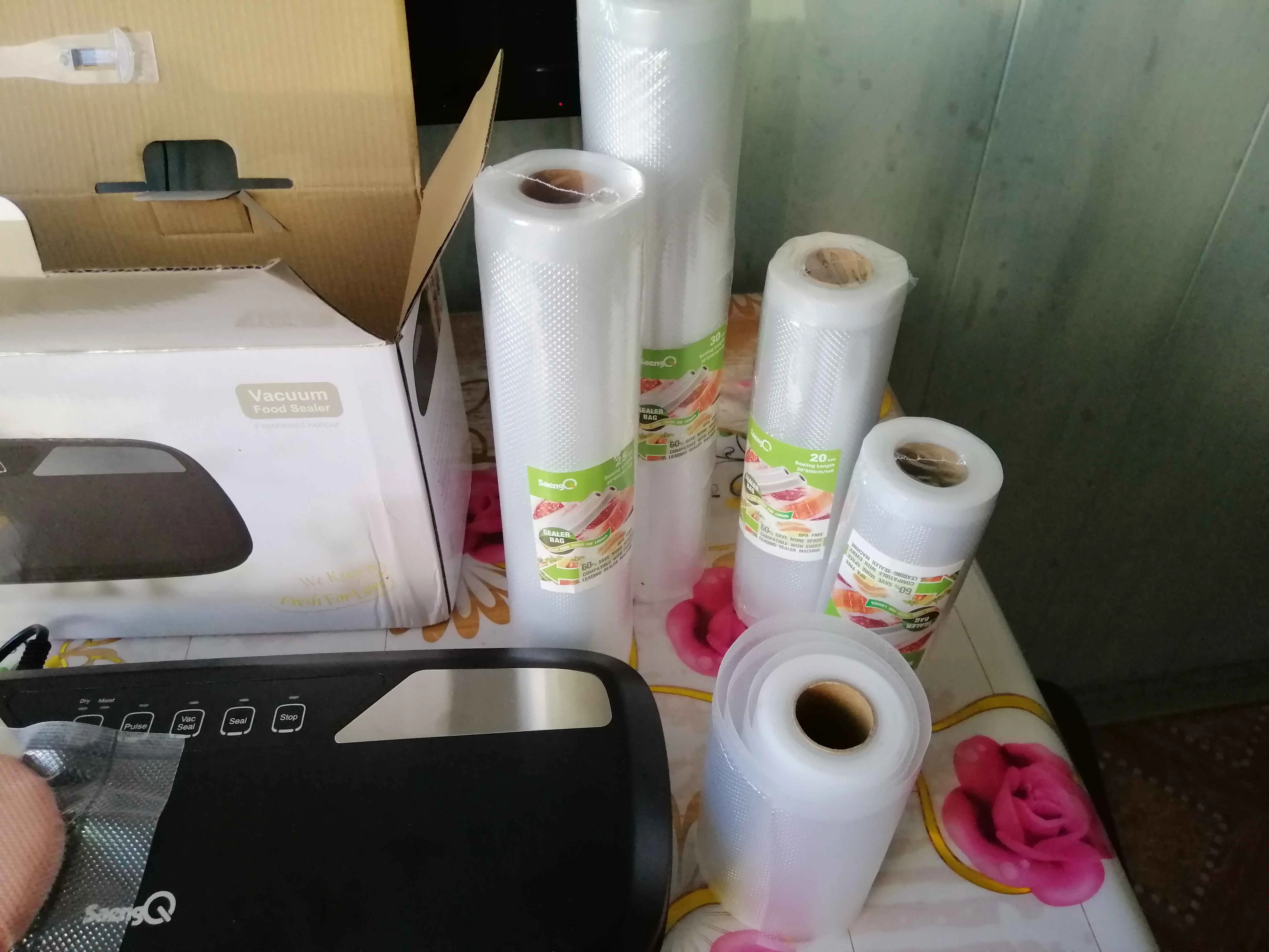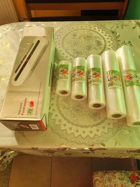 Пришёл супер быстро, в течении трех дней, не успели насладиться ожиданием) заказали сразу набор рулонов, так как в наборе 5 больших +5 маленьких пакетиков. Пришло всё в одной посылке, удобно. Вакууминизатор работает, инструкции на русском нет, разбираемся методом тыка. С первого раза не разобралась что надо до щелчка закрыть верхнюю крышку, просто держала нажатием сверху, в результате воздух вышел на половину, но пакет запаялся. Дальнейшие эксперименты на ура . Надеюсь на догую службу. Спасибо продавцу за быструю доставку. Рекомендую!